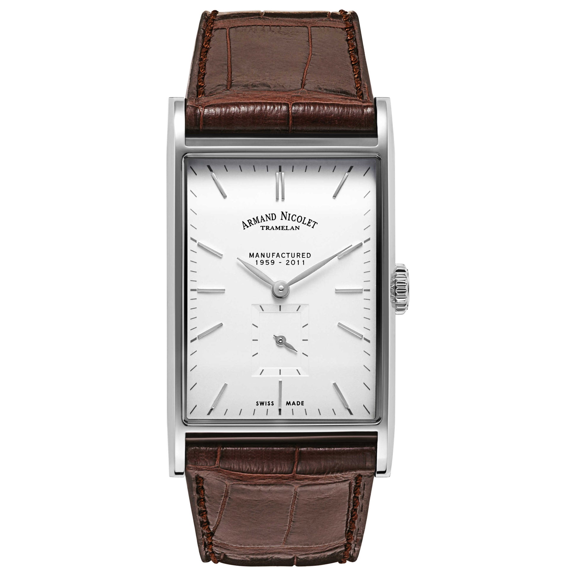 Armand Nicolet, L11, Men's Watch, Stainless Steel Case, Leather Alligator Strap, Swiss Mechanical Manual (Hand-Winding), 9680A-AG-P680MR4