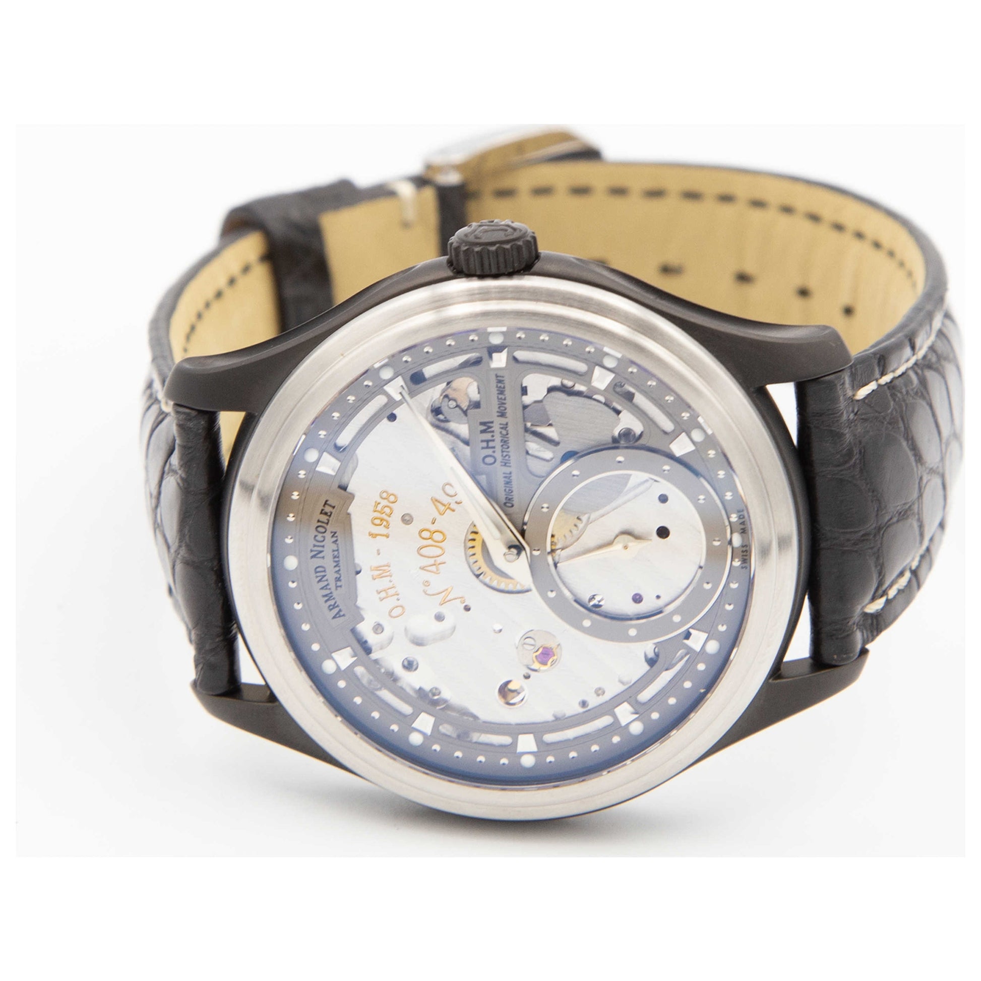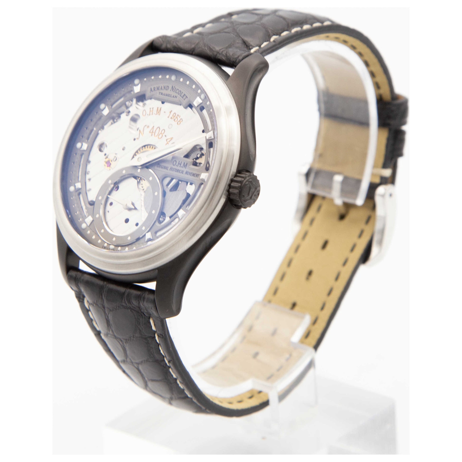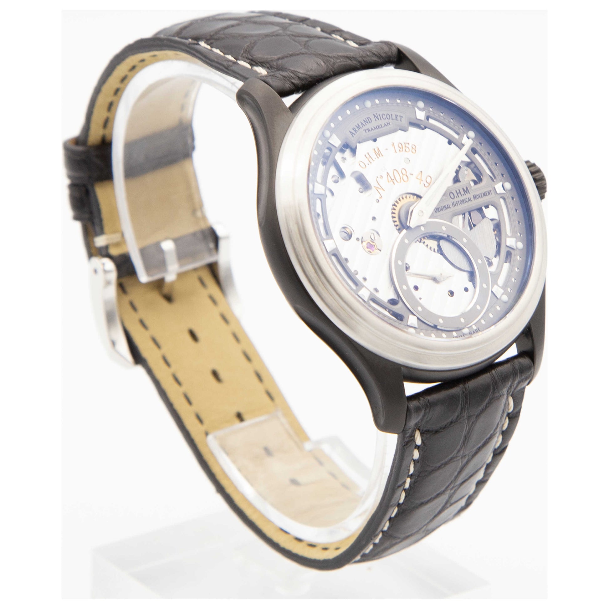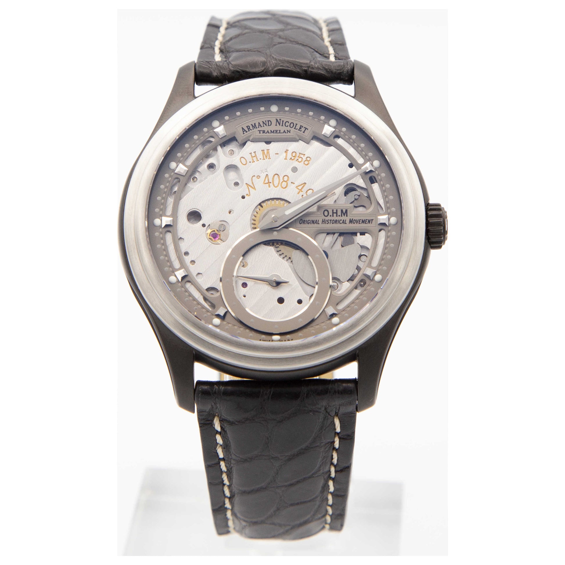 Armand Nicolet, L14, Men's Watch, Stainless Steel and Black DLC Coating Case, Leather Alligator Strap, Swiss Mechanical Manual (Hand-Winding), A750ANAGRP713NR2-SDV