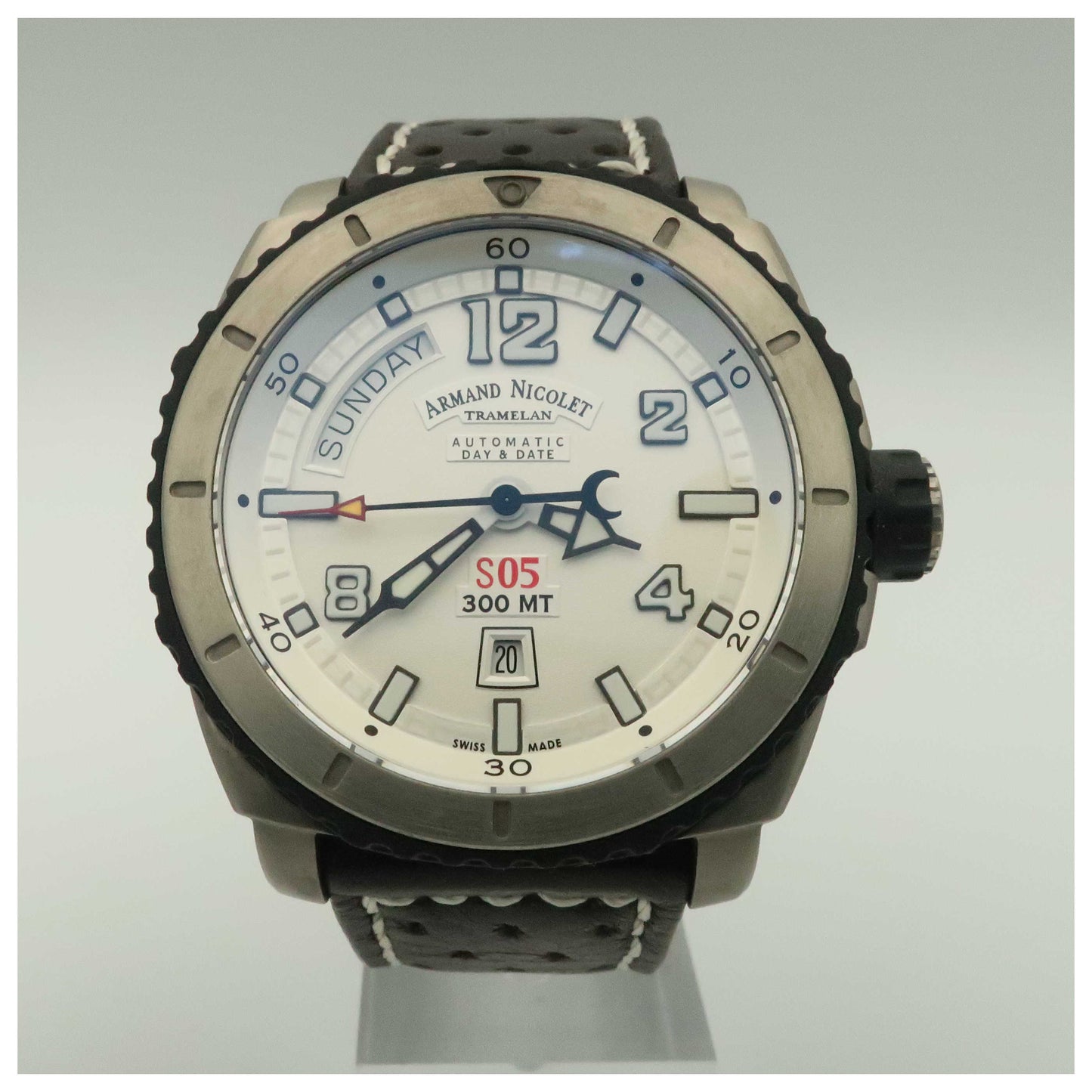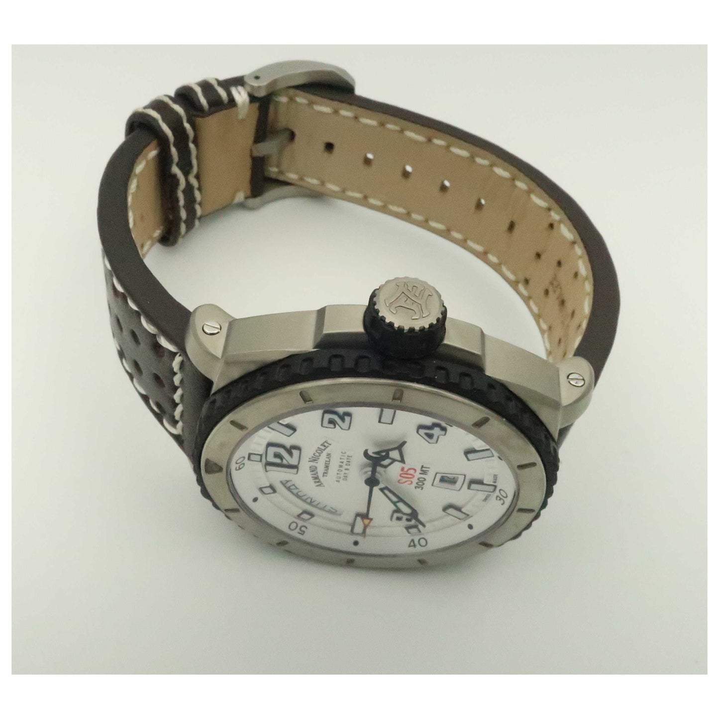 Armand Nicolet, S05, Men's Watch, Titanium Case, Leather Strap, Swiss Mechanical Automatic (Self-Winding), T610AGN-AGP160MR4-SD