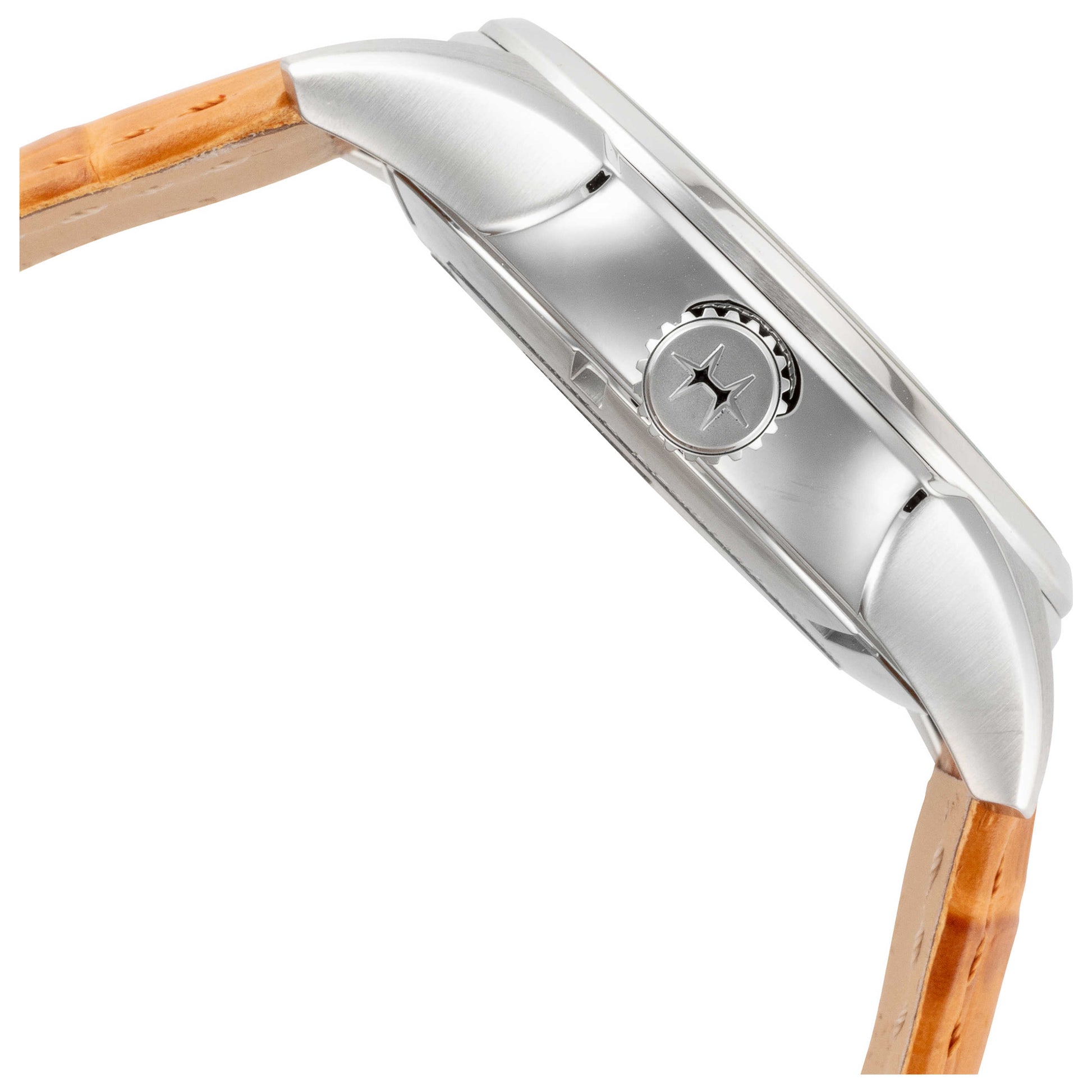 Experience timeless elegance with the Hamilton Jazzmaster Men's watch, a sophisticated timepiece that effortlessly combines function and style. This Swiss-made watch features an automatic H-13 movement with a remarkable 80-hour power reserve. The silver-tone round stainless steel case, measuring 42mm, houses a deep blue dial with a date display at 3 o'clock. Ensuring clarity and durability, the watch is protected by a scratch-resistant sapphire crystal and offers water resistance up to 50m. A supple brown leather strap with a deployment clasp completes the elegant ensemble. The pull and push crown and the exhibition case back are additional standout features of this exquisite piece. H32635541