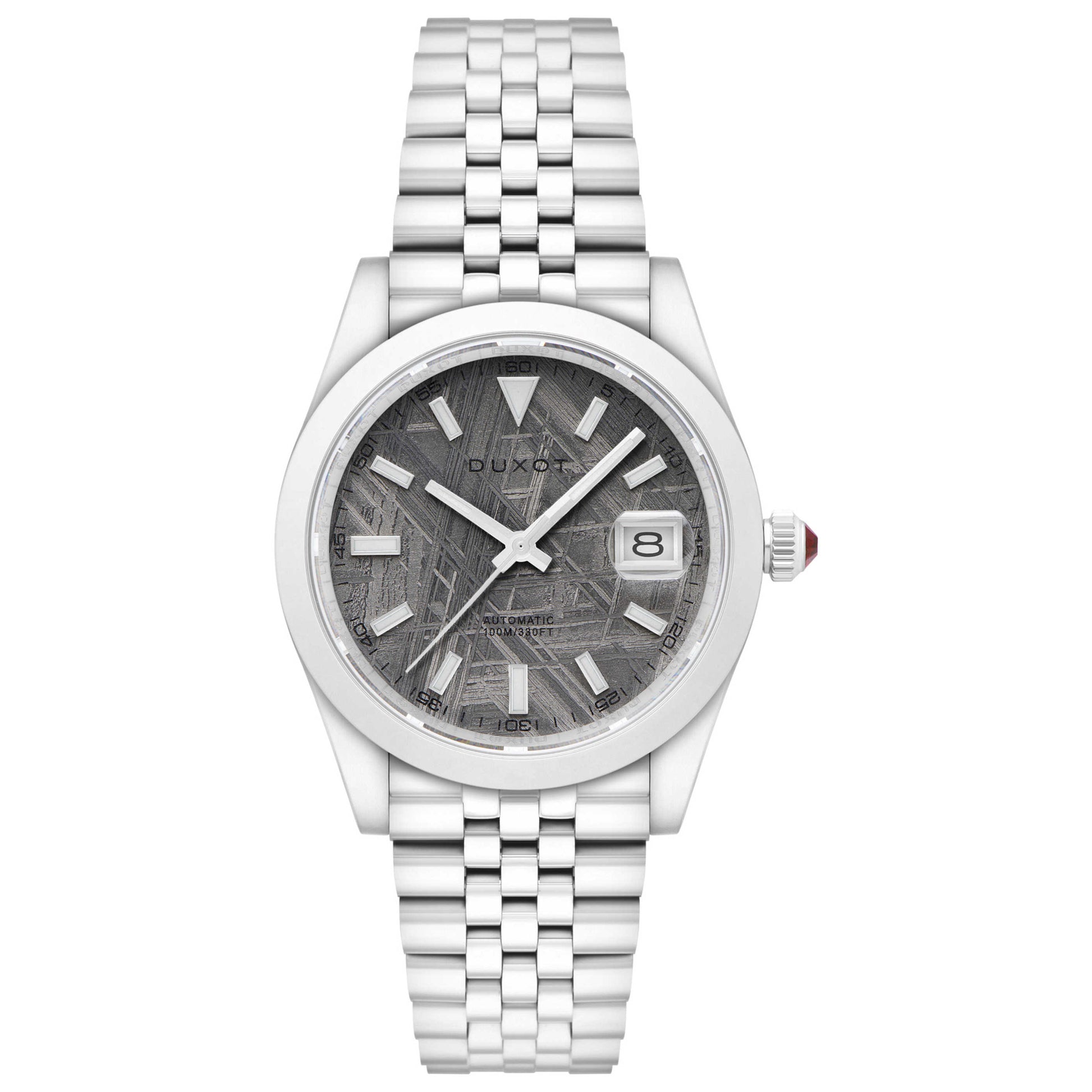 Introducing the Duxot Vezeto, a timepiece crafted with precision for the discerning gentleman. Powered by a made-in-Japan Seiko - NH35 automatic movement with a 40-hour power reserve, this watch blends functionality with durability. Its 40mm stainless steel case is complemented by a scratch-resistant sapphire crystal and a screw-down crown, ensuring water resistance up to 100m (330 feet). The silver bracelet with a fold-over clasp pairs seamlessly with its elegant dial, featuring a convenient date display. A sophisticated synthesis of technology and style, the Duxot Vezeto is designed to accompany every milestone. DX-2061-22
