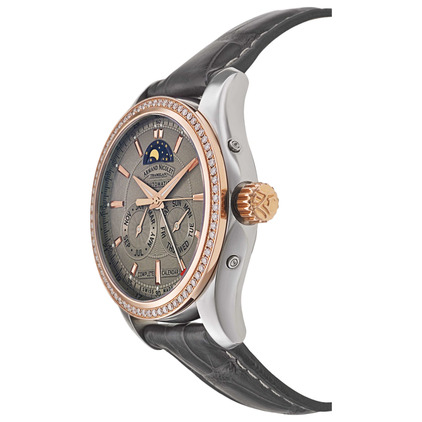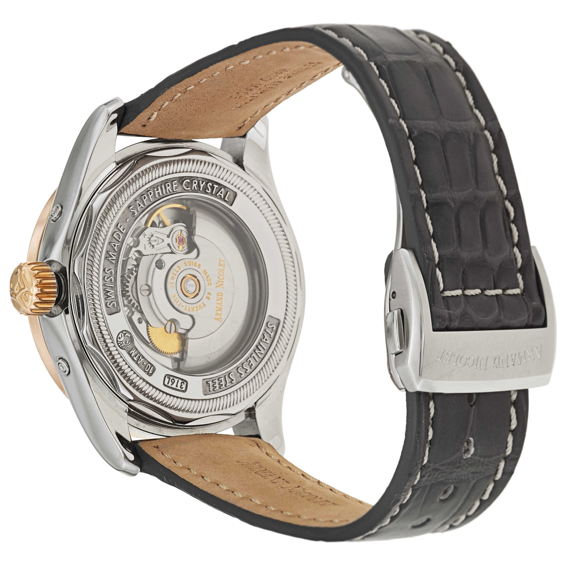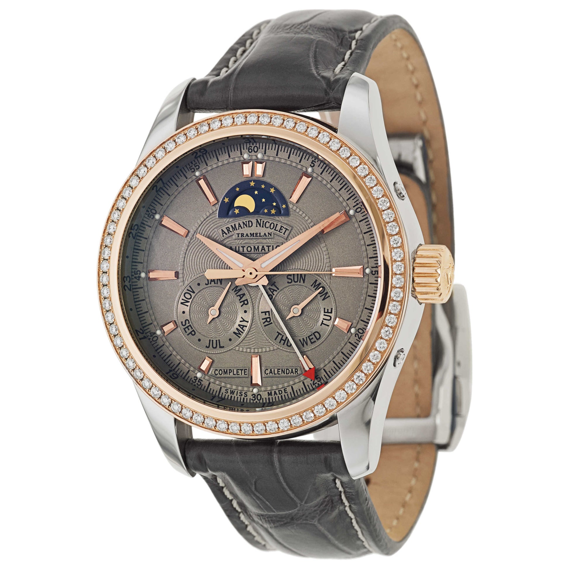 Armand Nicolet, M02, Men's Watch, 18K Rose Gold and Stainless Steel Case, Leather Alligator Strap, Automatic, 8642D-2-GR-P974GR2