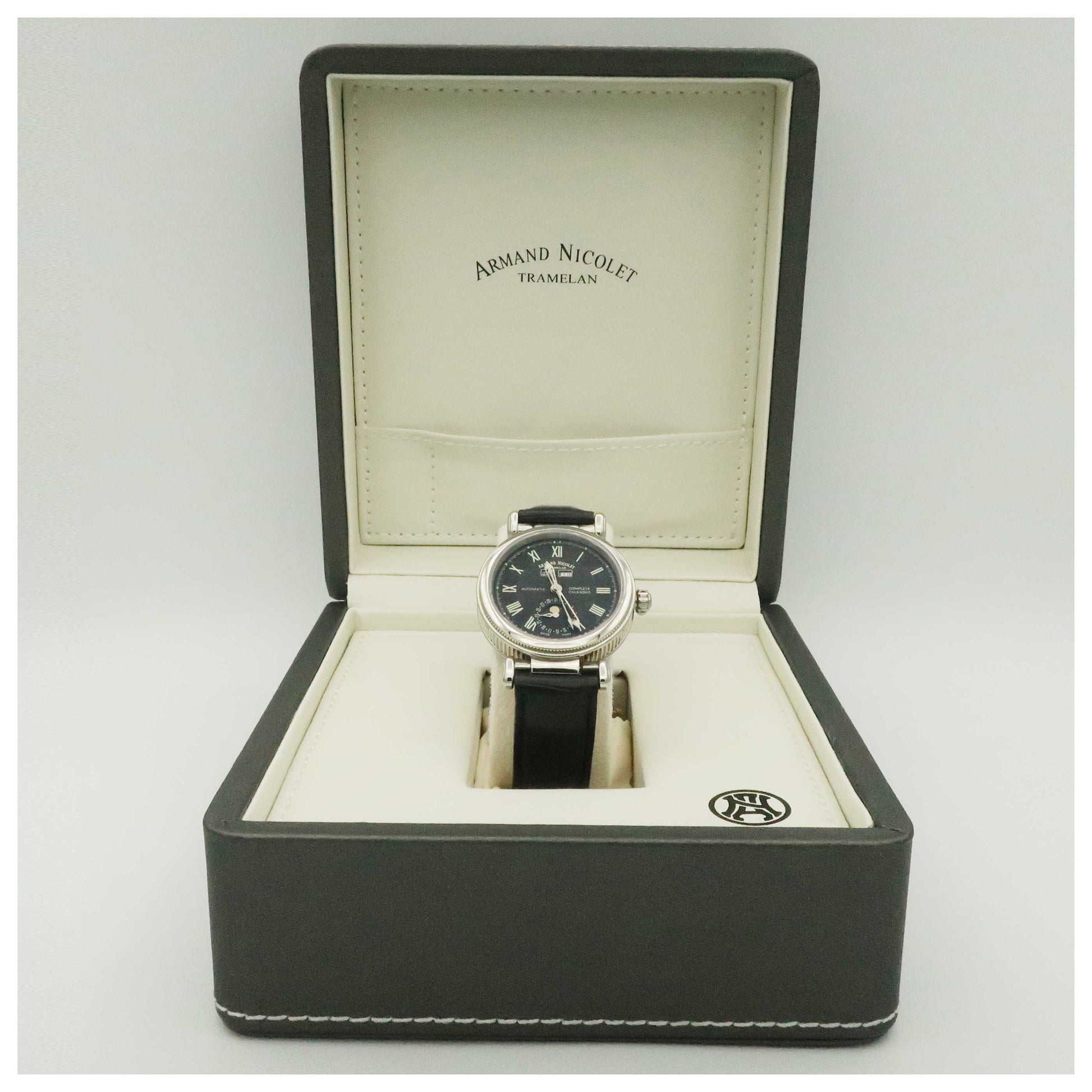 Armand Nicolet, Arc Royal, Men's Watch, Stainless Steel Case, Leather Strap, Automatic, 9439A-NR-M9430-PO