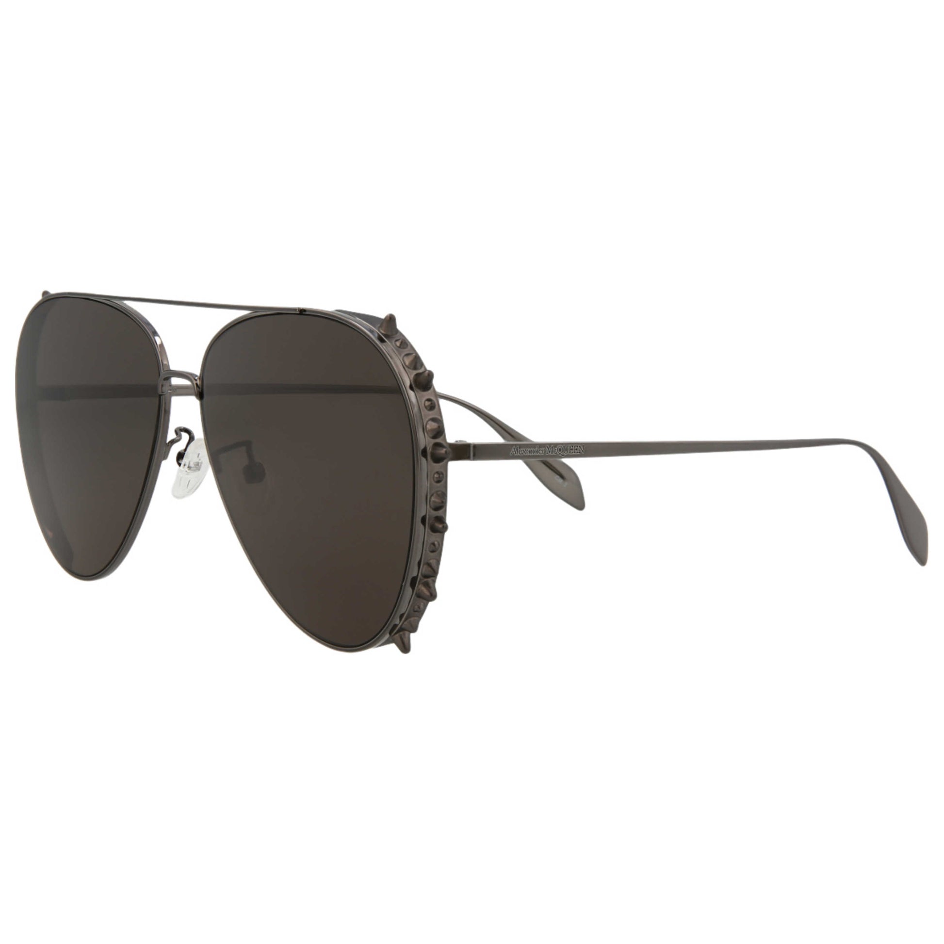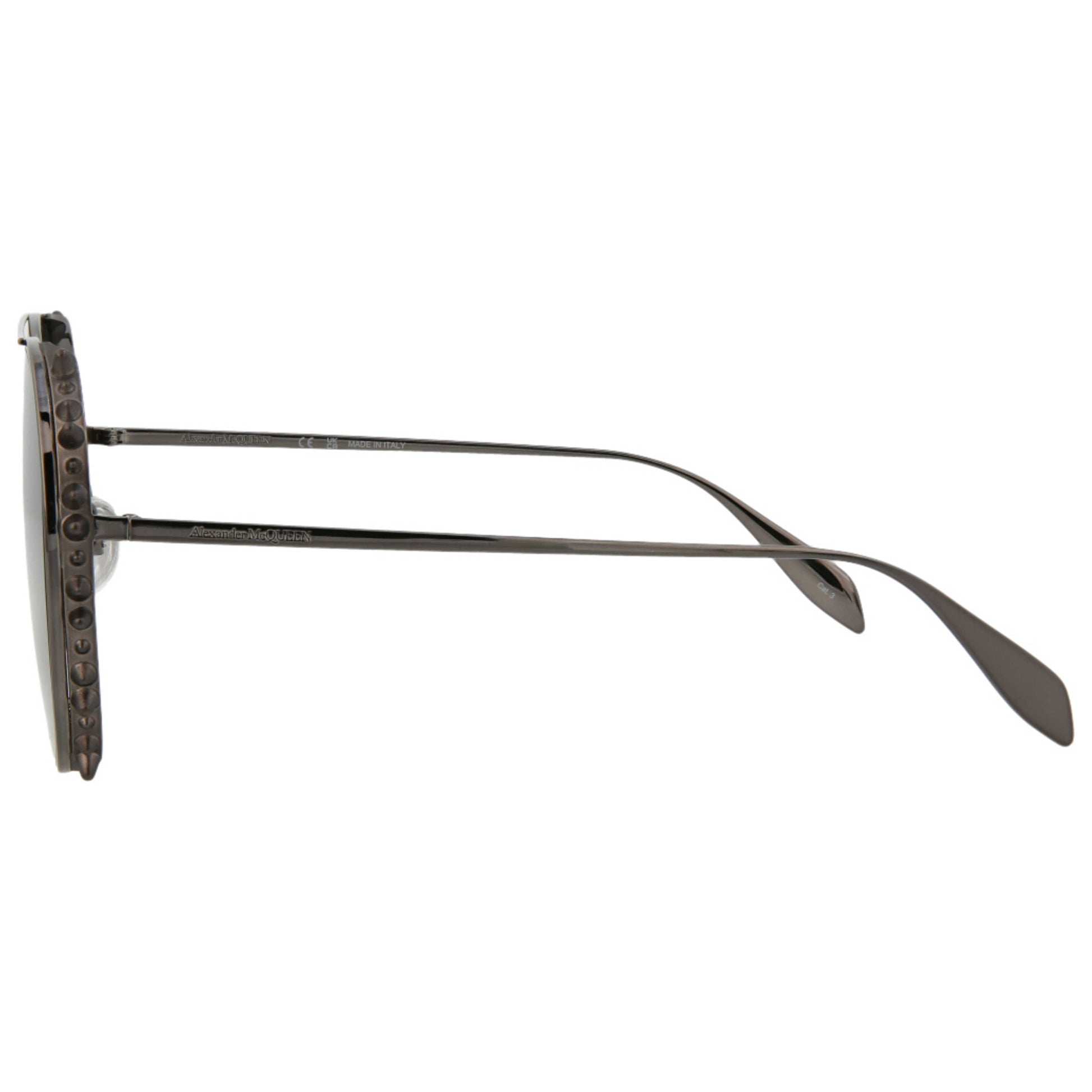 Elevate your style with Alexander McQueen sunglasses. Crafted in Italy from ruthenium metal with a lens width of 63 mm, these sunglasses feature grey lenses and dimensions tailored for comfort: 145 mm arm length and 13 mm bridge width. Indulge in a touch of luxury while protecting your eyes with superior craftsmanship. AM0308S-30010850-001