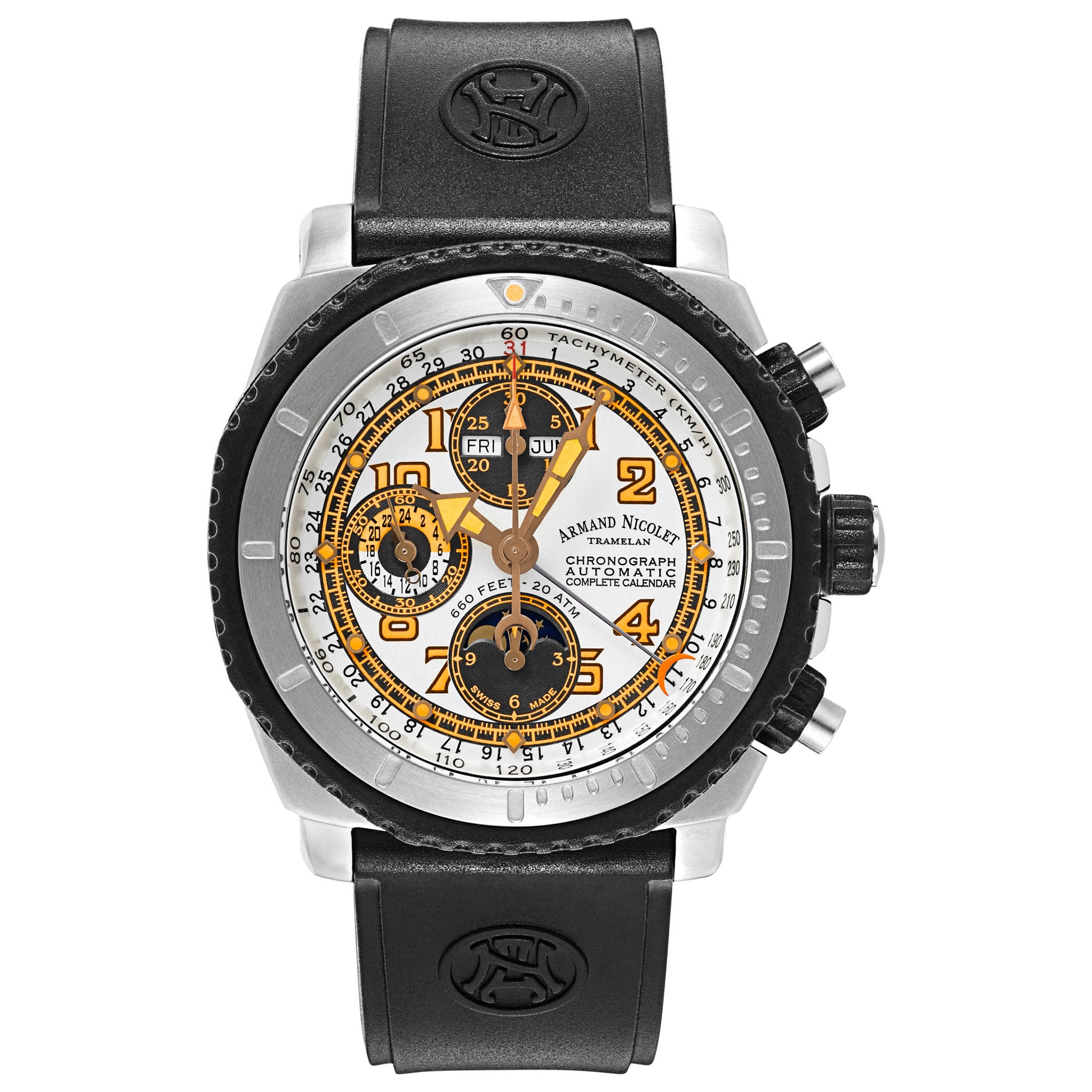 Armand Nicolet, S05 Chronograph & Complete Calendar, Men's Watch, Stainless Steel Case, Rubber Strap, Automatic, 9168A-AG-G9164