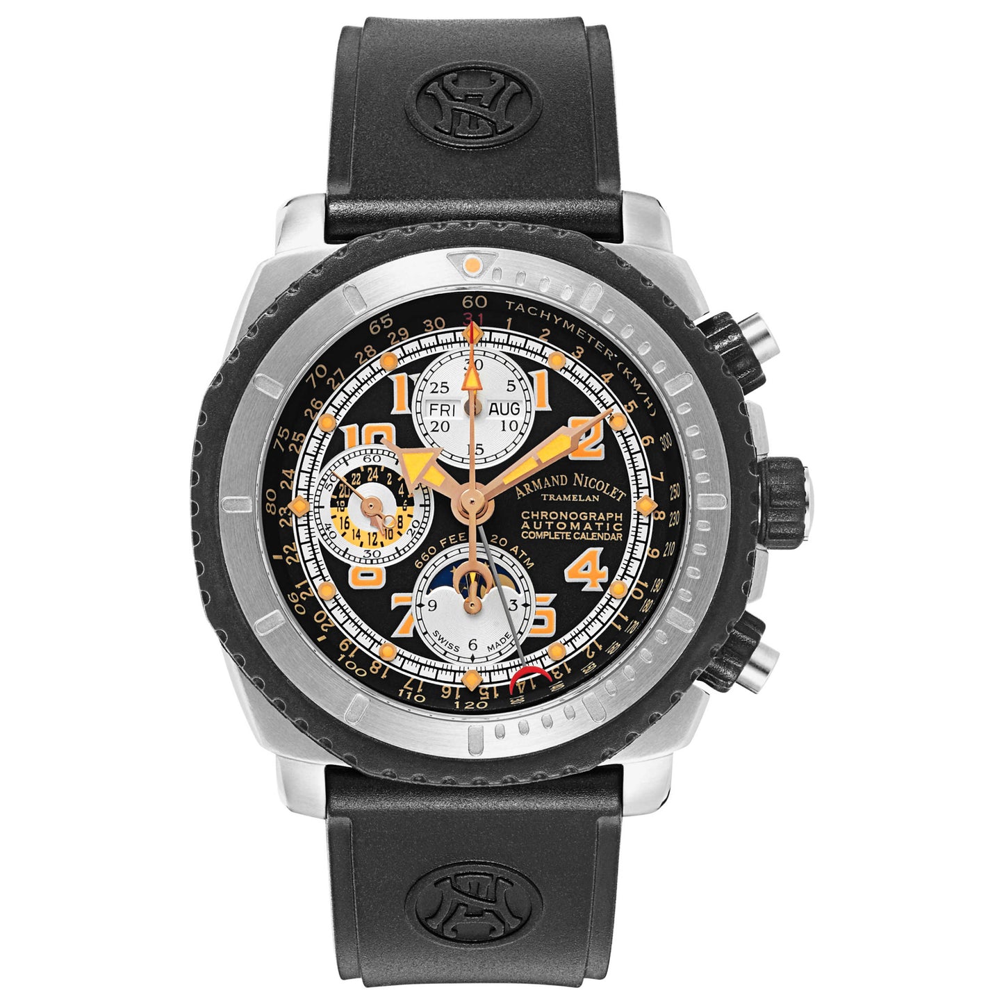 Armand Nicolet, S05 Chronograph & Complete Calendar, Men's Watch, Stainless Steel Case, Rubber Strap, Automatic, 9168A-NR-G9164