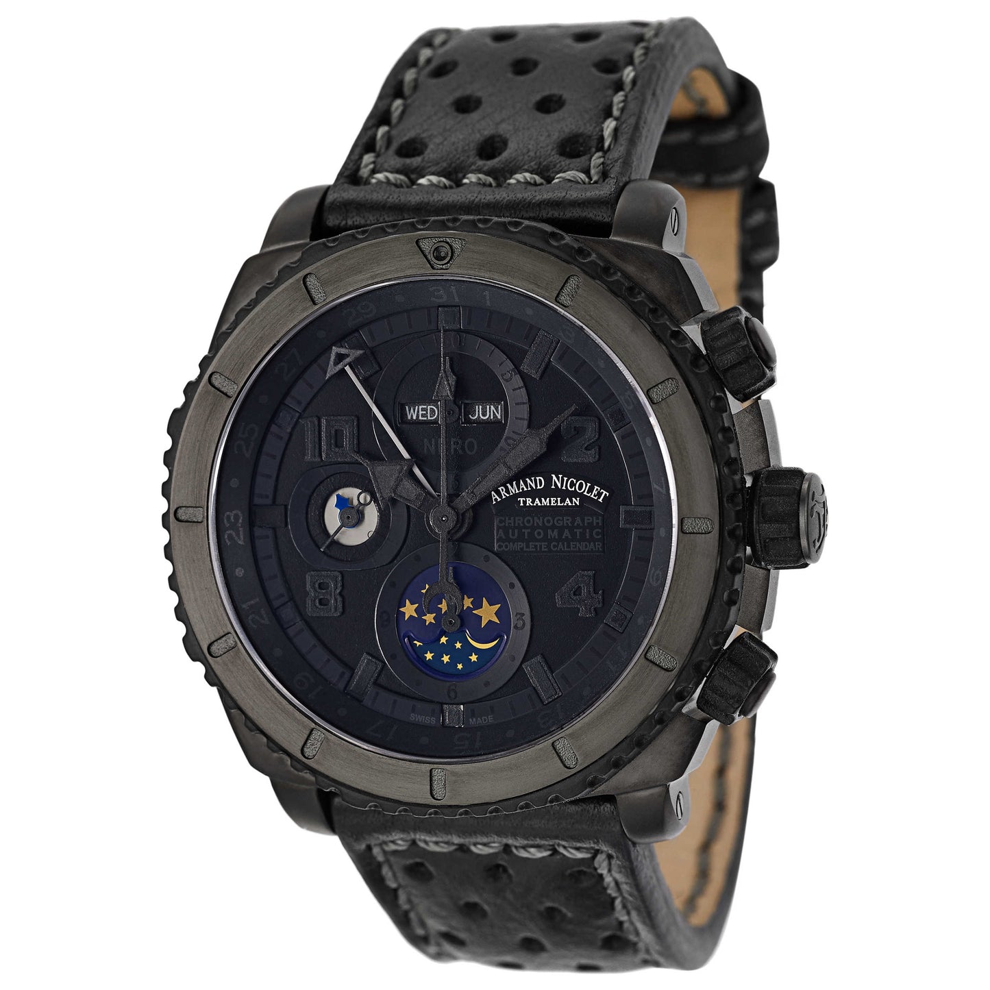 Armand Nicolet, S05 Chronograph & Complete Calendar, Men's Watch, Titanium DLC Coated Case, Leather Calf Skin Strap, Automatic, T618N-NR-P160NG4