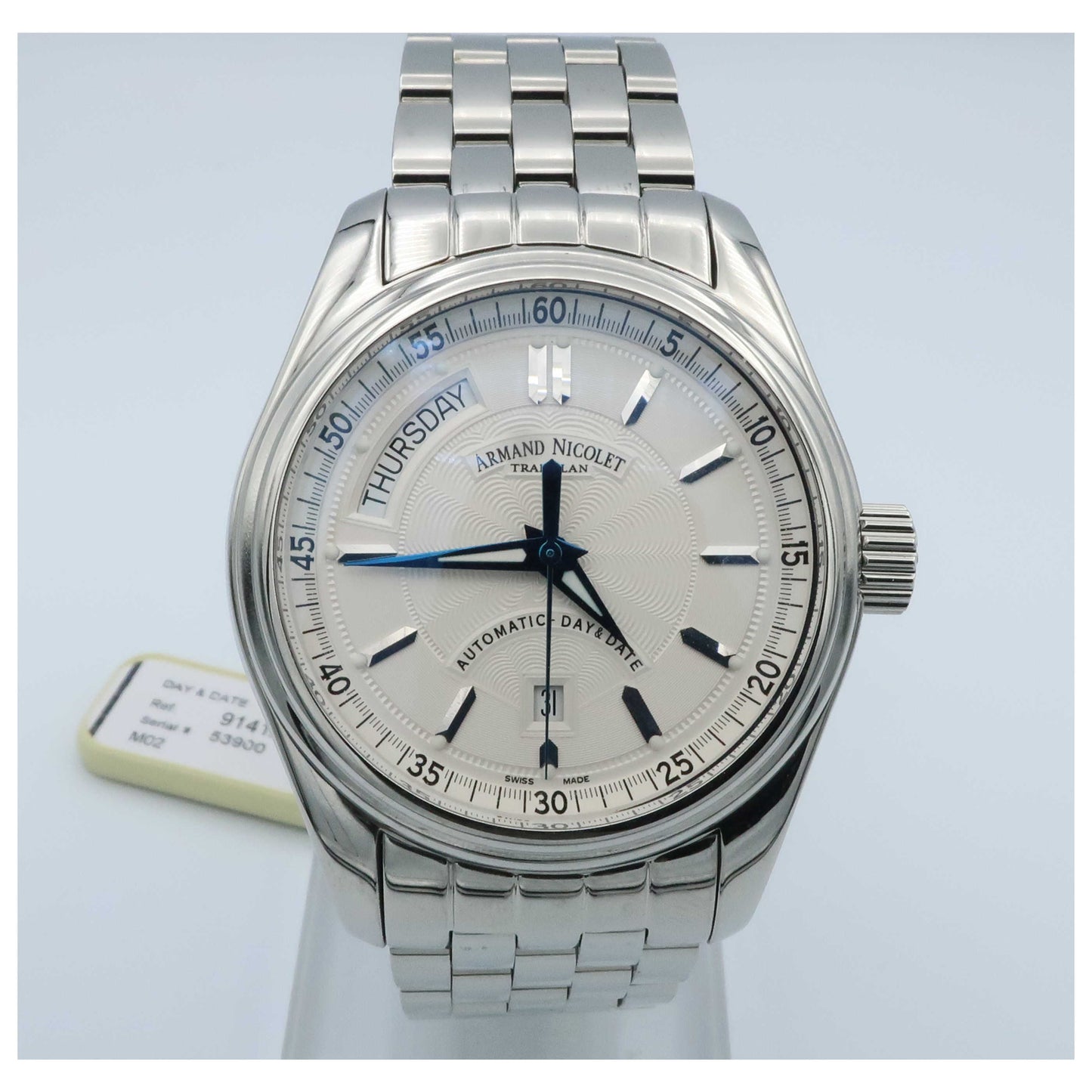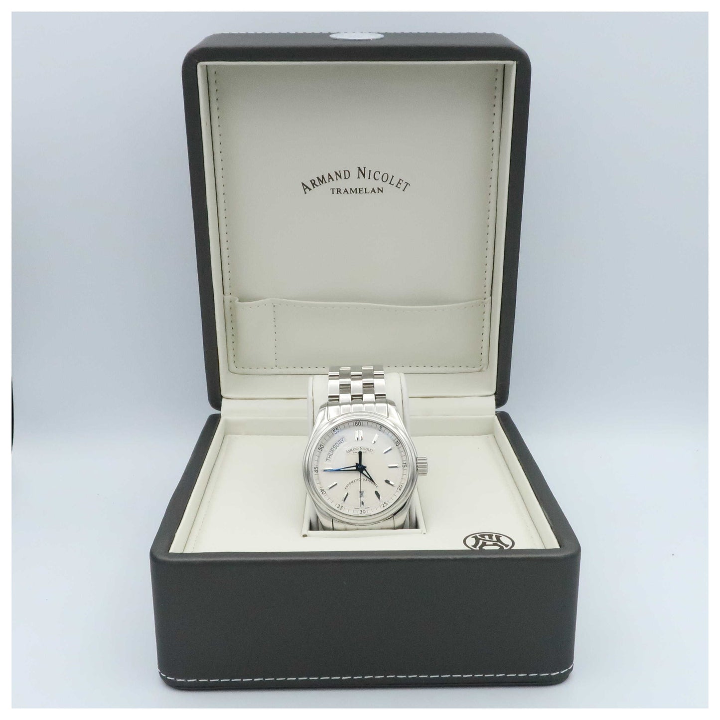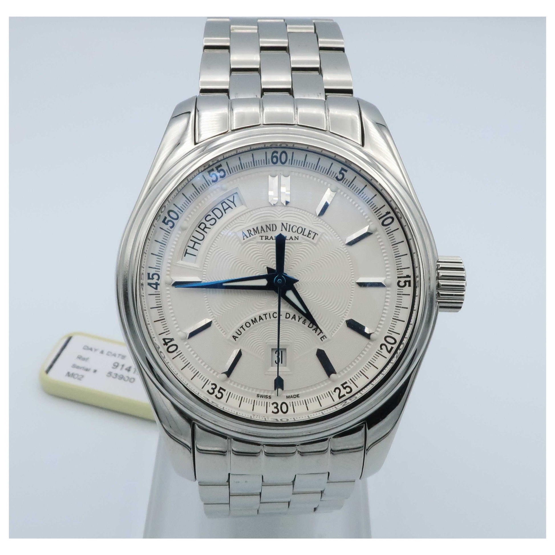Armand Nicolet, M02, Men's Watch, Stainless Steel Case, Stainless Steel Bracelet, Swiss Mechanical Automatic (Self-Winding), 9141A-AG-M9140-SDV