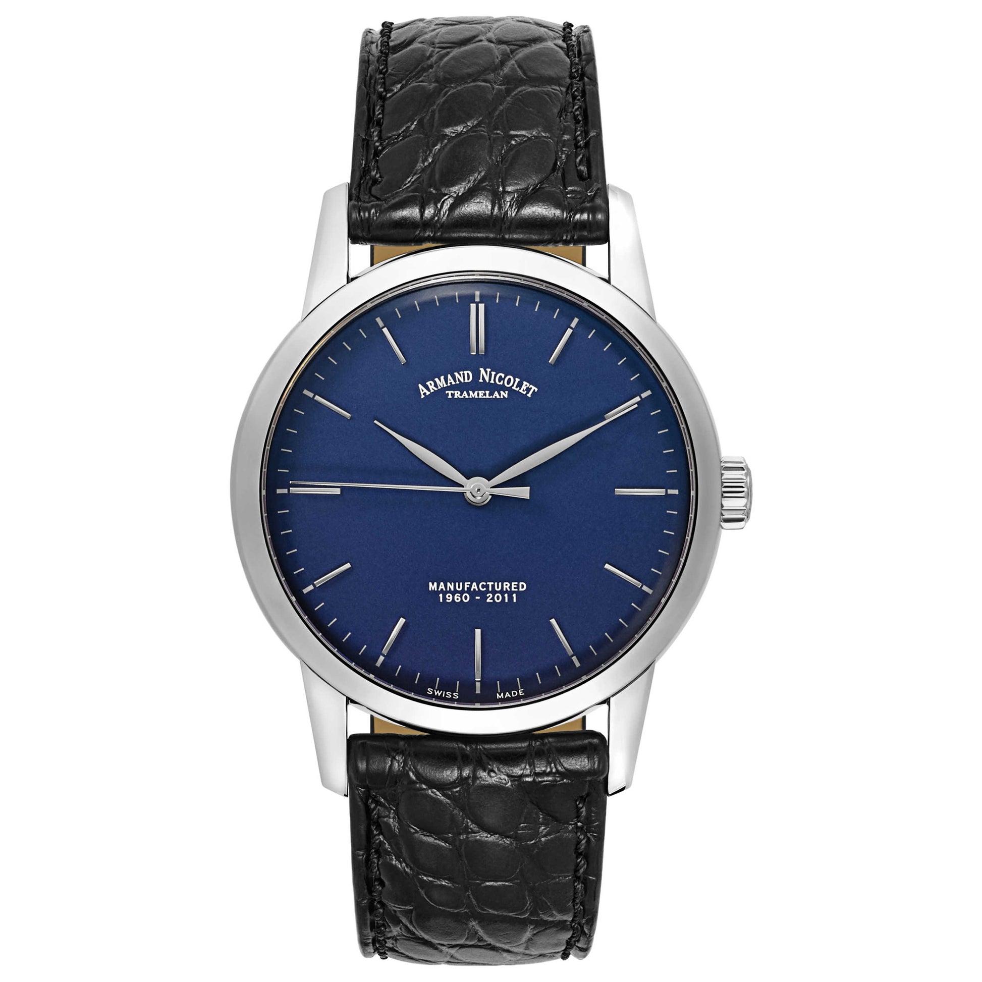 Armand Nicolet, L10, Men's Watch, Stainless Steel Case, Leather Alligator Strap, Swiss Mechanical Manual (Hand-Winding), 9670A-BU-P670NR1