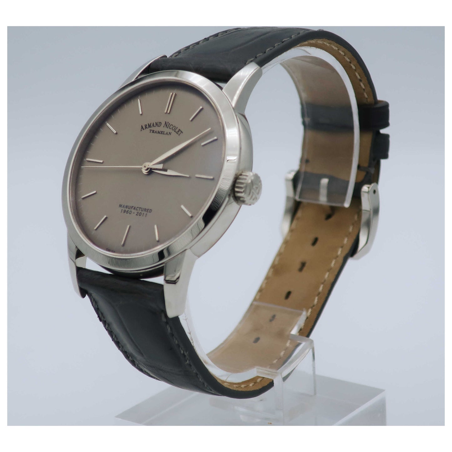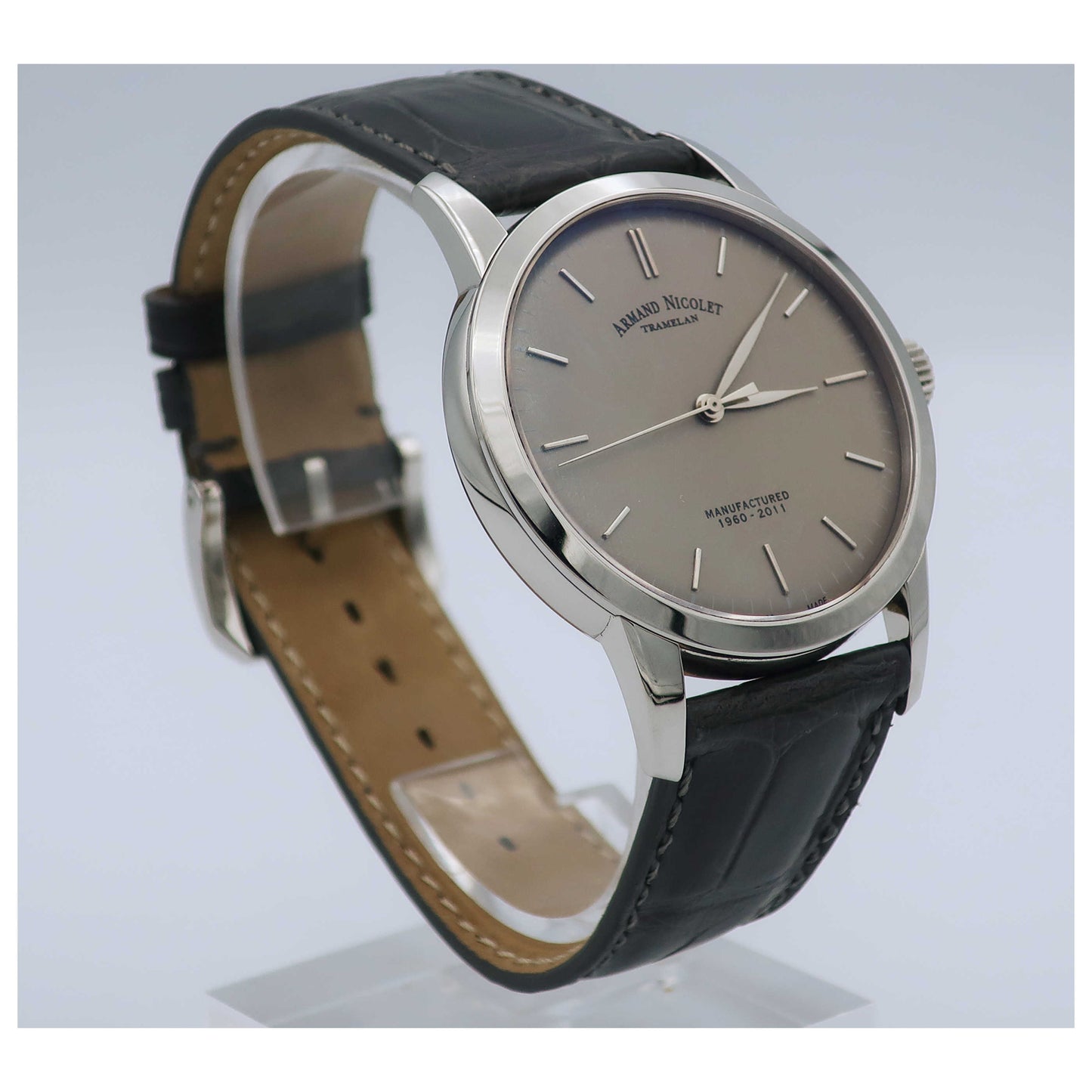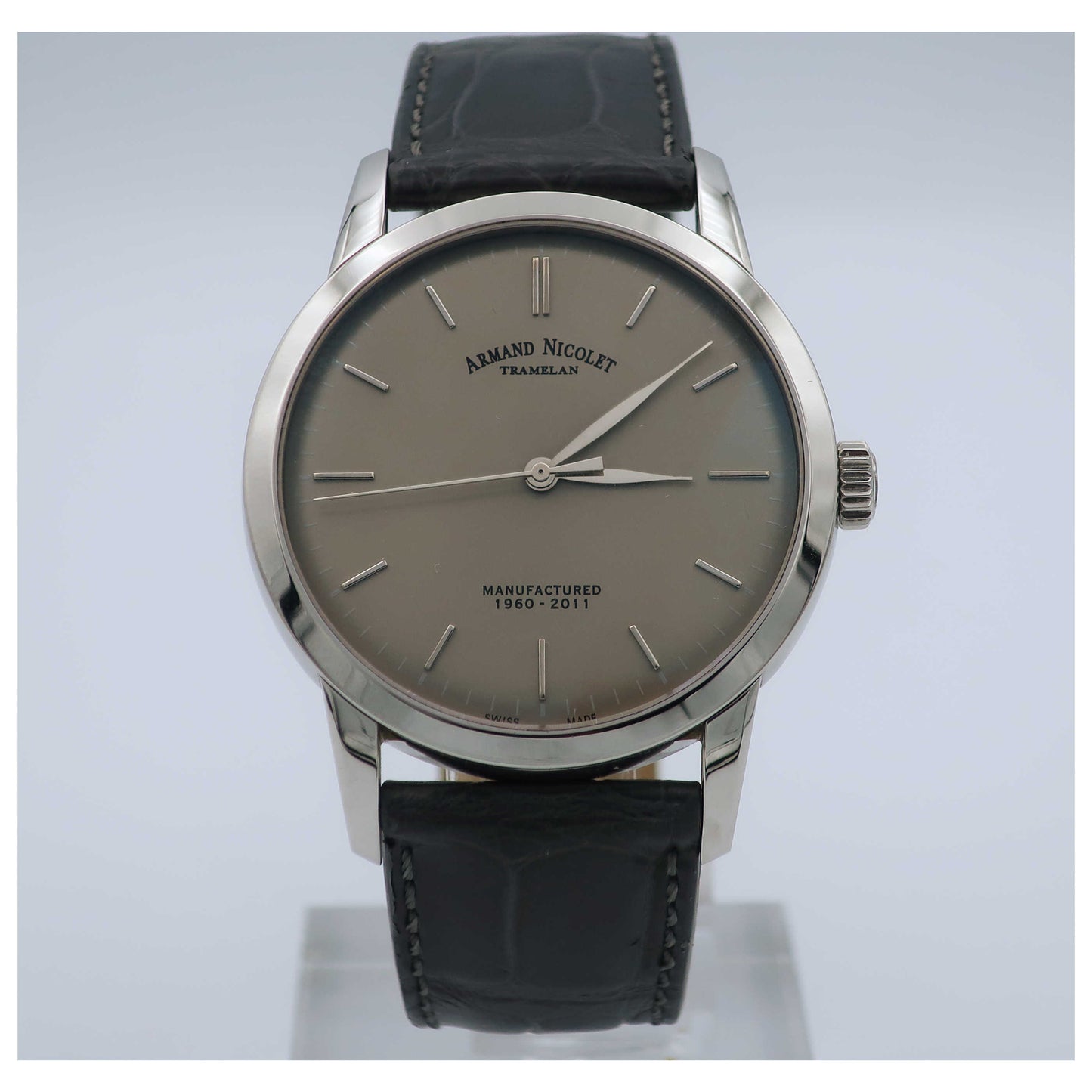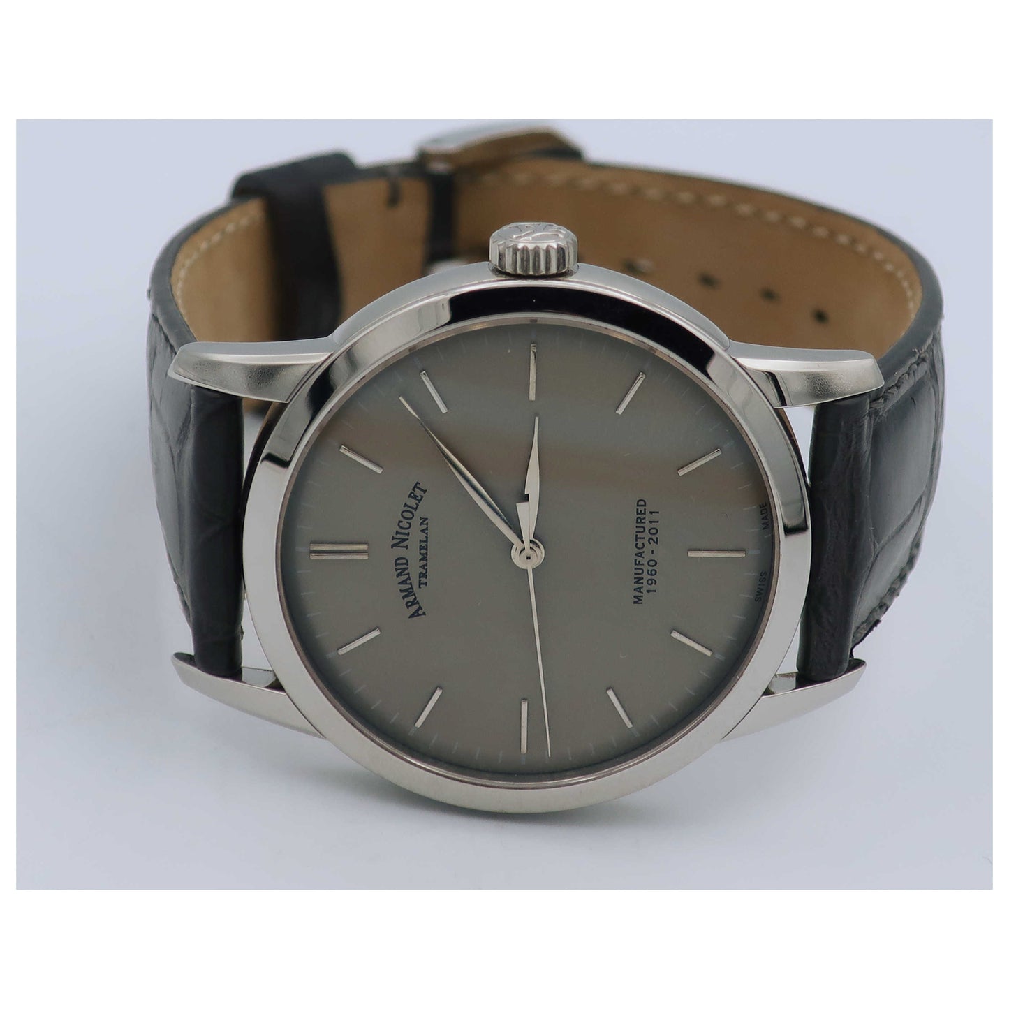 Armand Nicolet, L10, Men's Watch, Stainless Steel Case, Leather Alligator Strap, Swiss Mechanical Manual (Hand-Winding), 9670A-GR-P670GR1-SD