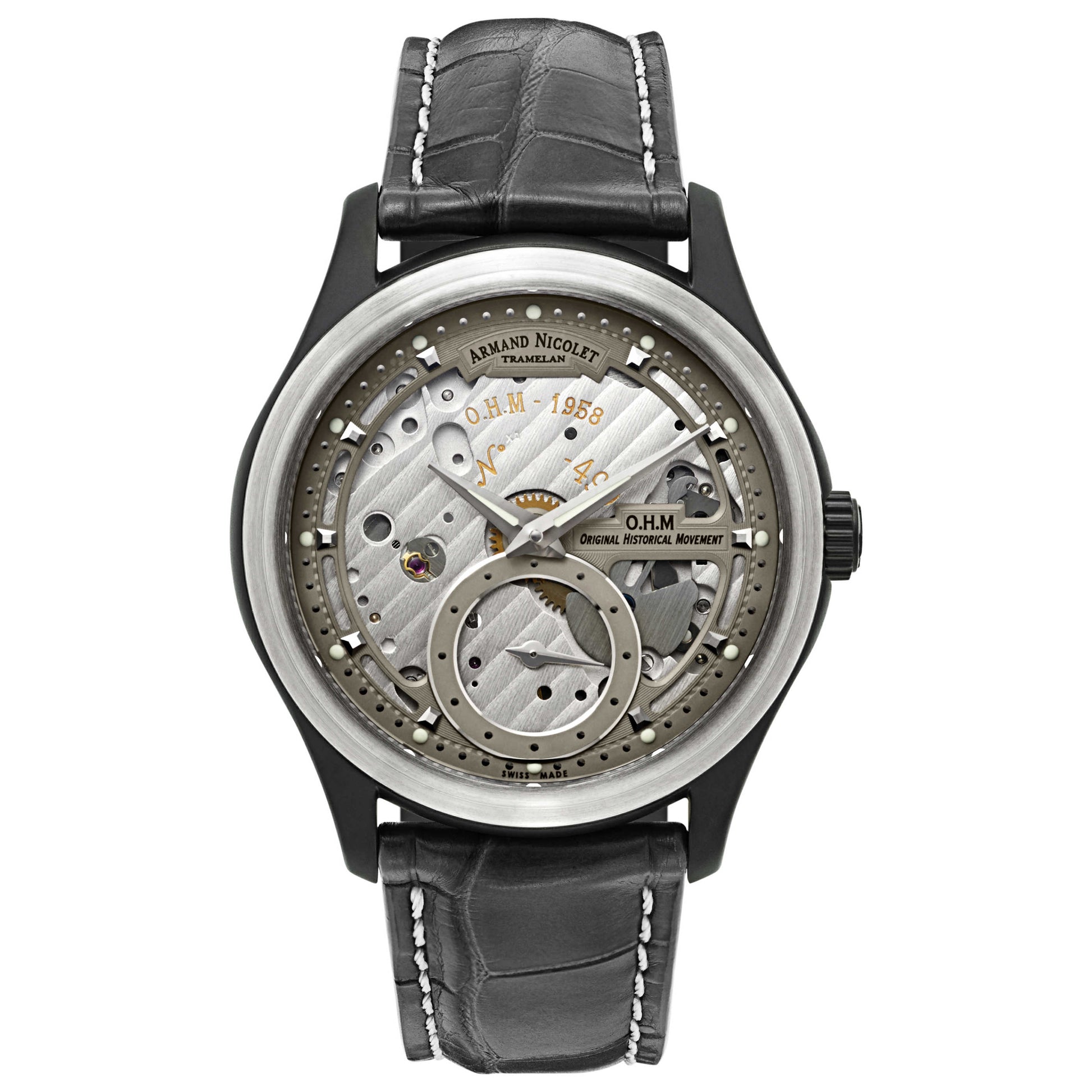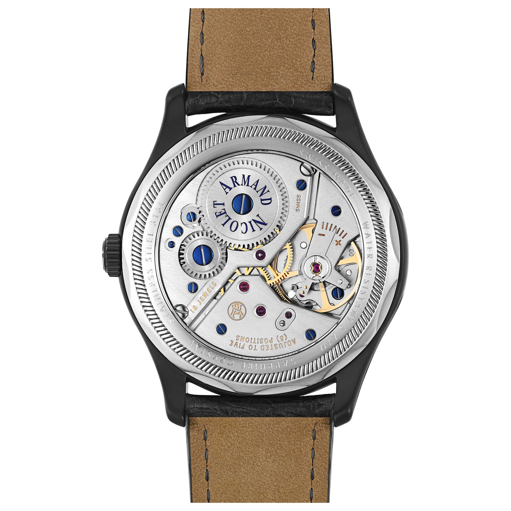 Armand Nicolet, L14, Men's Watch, Stainless Steel and Black DLC Coating Case, Leather Alligator Strap, Swiss Mechanical Manual (Hand-Winding), A750ANA-GR-P713GR2