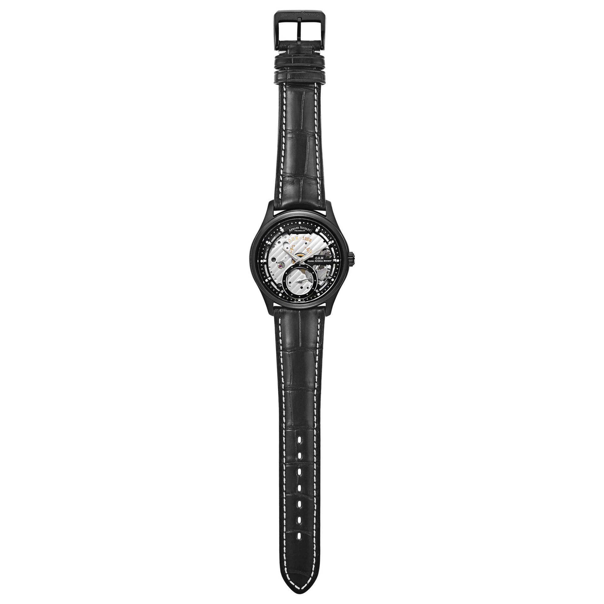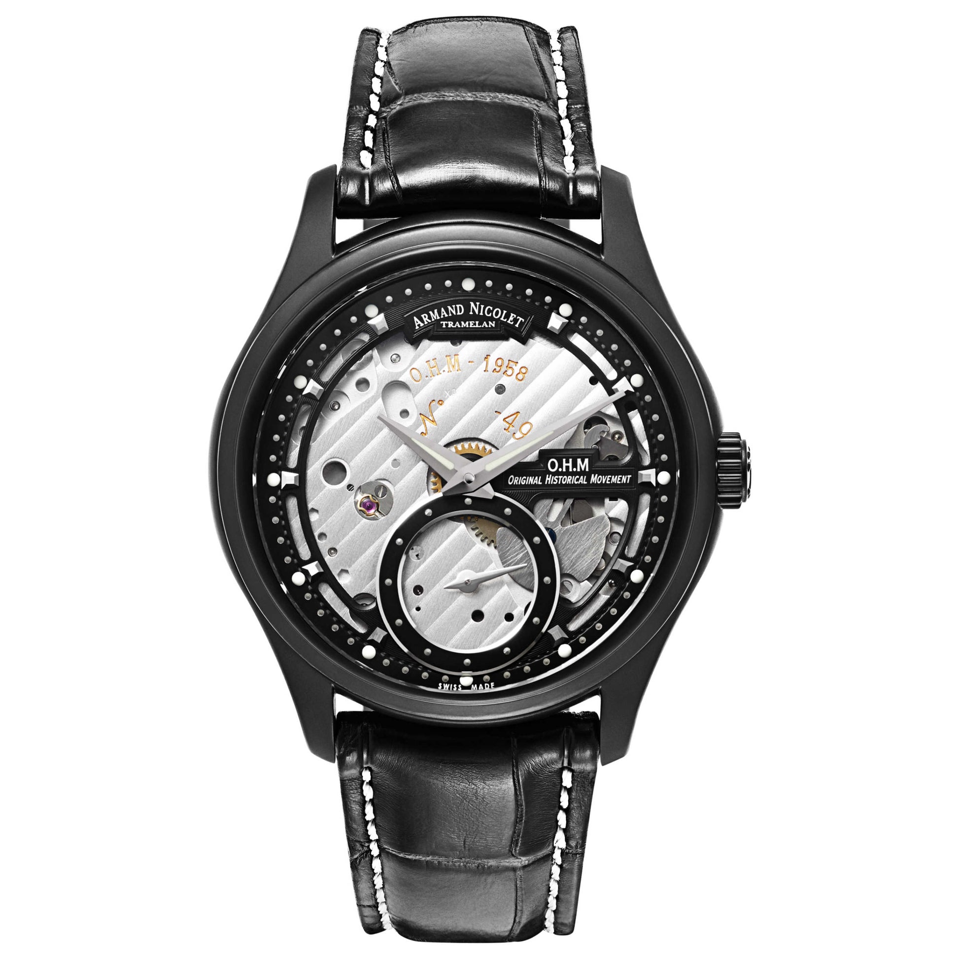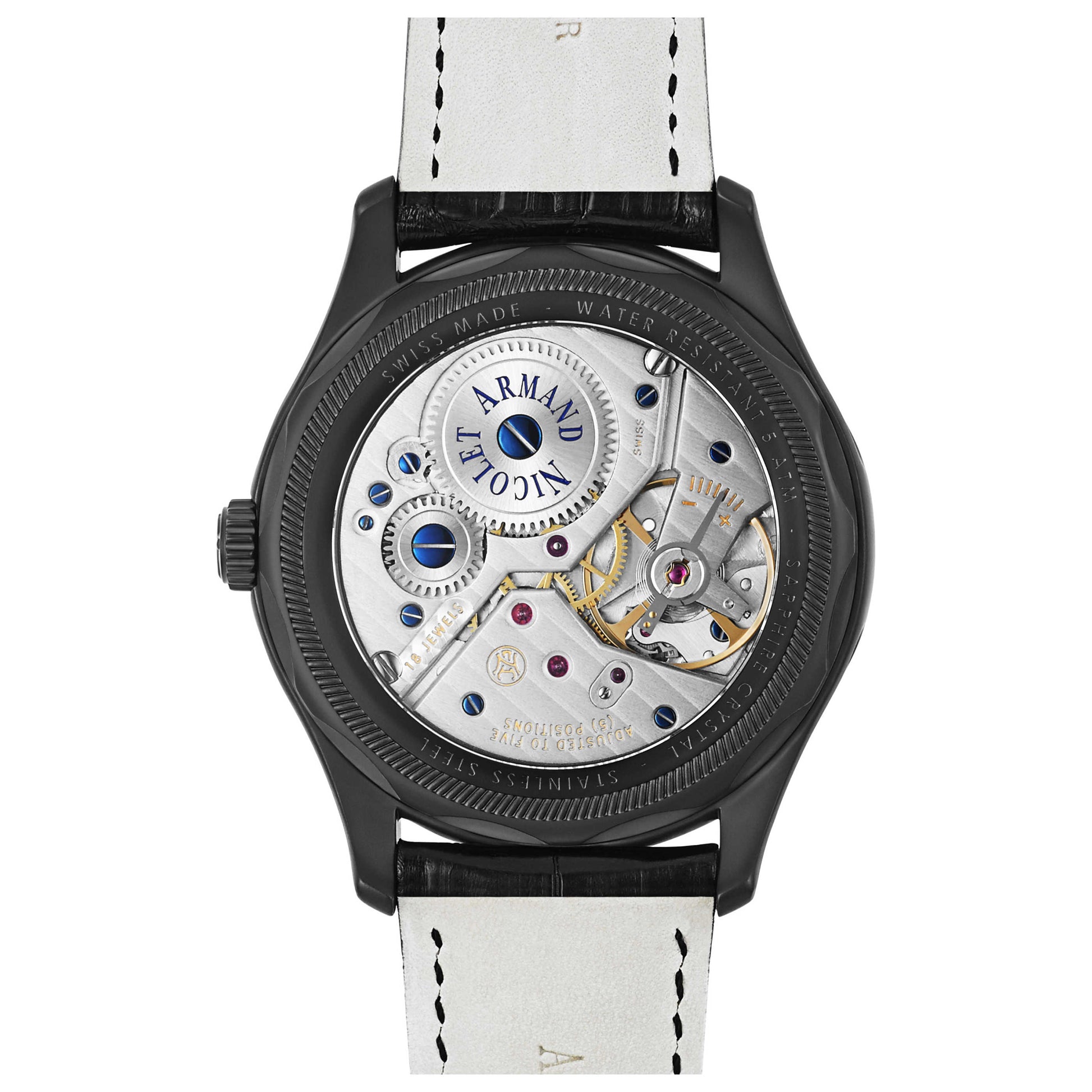 Armand Nicolet, L14, Men's Watch, Stainless Steel Black DLC Coating Case, Leather Alligator Strap, Swiss Mechanical Manual (Hand-Winding), A750ANN-NR-P713NS2