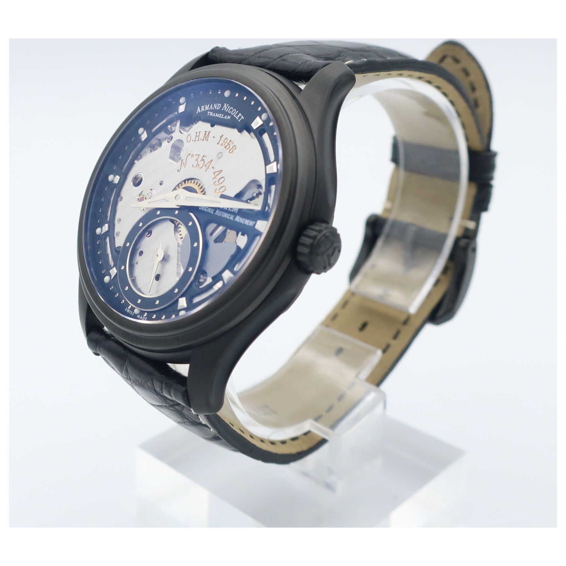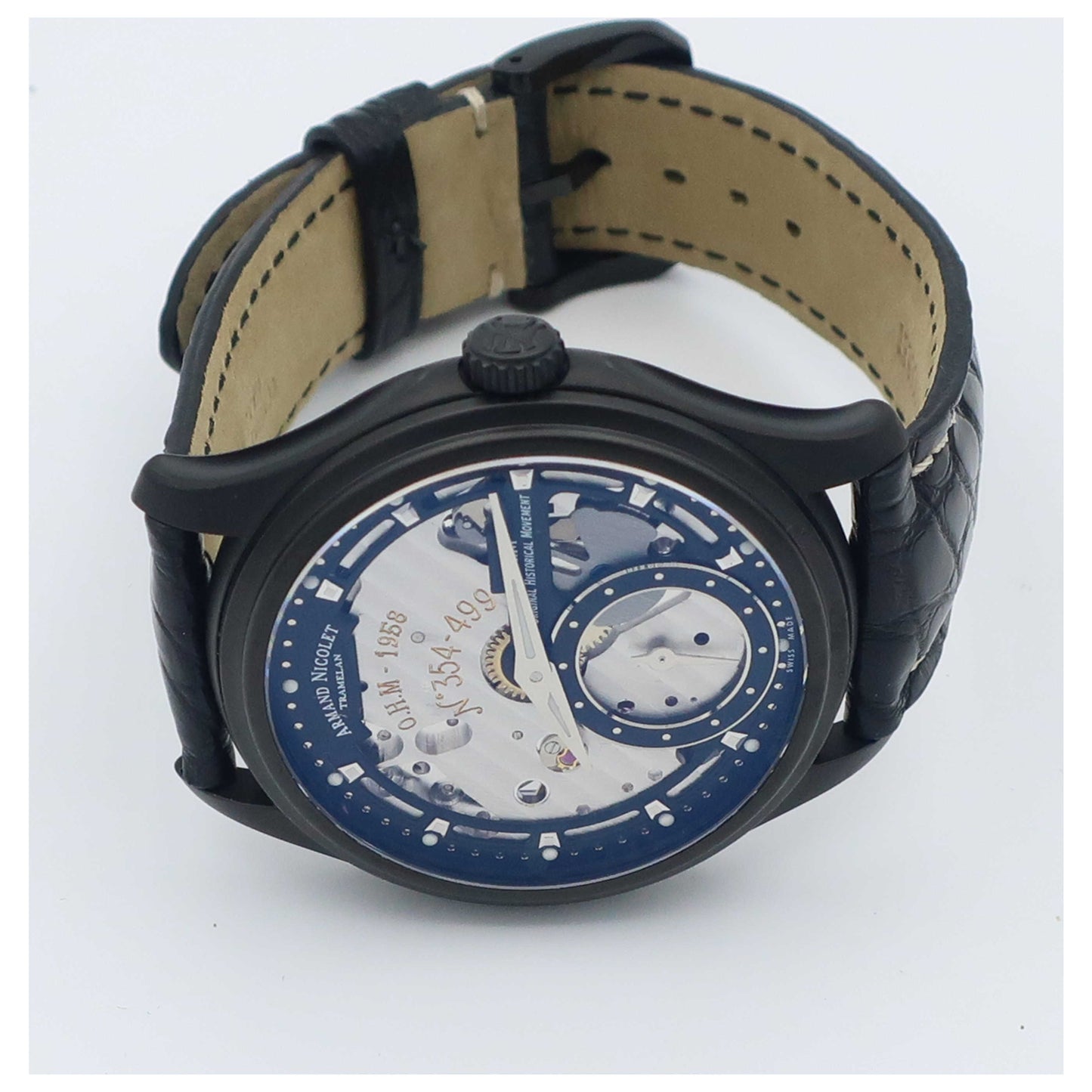 Armand Nicolet, L14, Men's Watch, Stainless Steel Black DLC Coating Case, Leather Alligator Strap, Swiss Mechanical Manual (Hand-Winding), A750ANN-NRP713NR2-SD