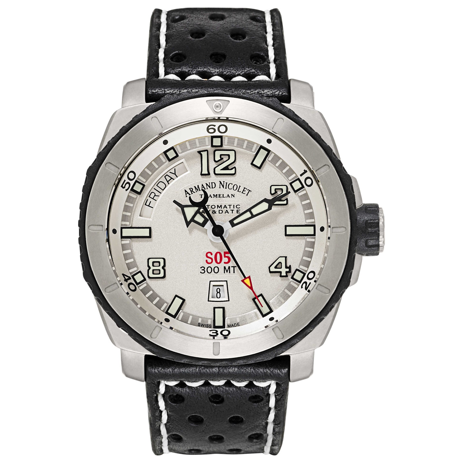 Armand Nicolet, S05, Men's Watch, Titanium Case, Leather Calf Skin Strap, Swiss Mechanical Automatic (Self-Winding), T610A-AG-P160NR4