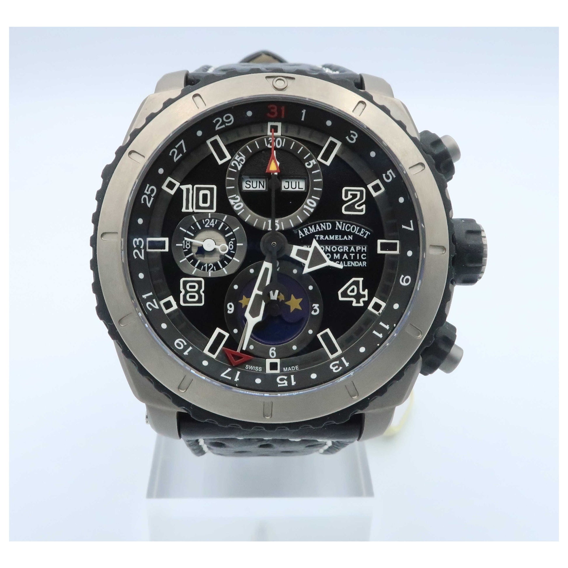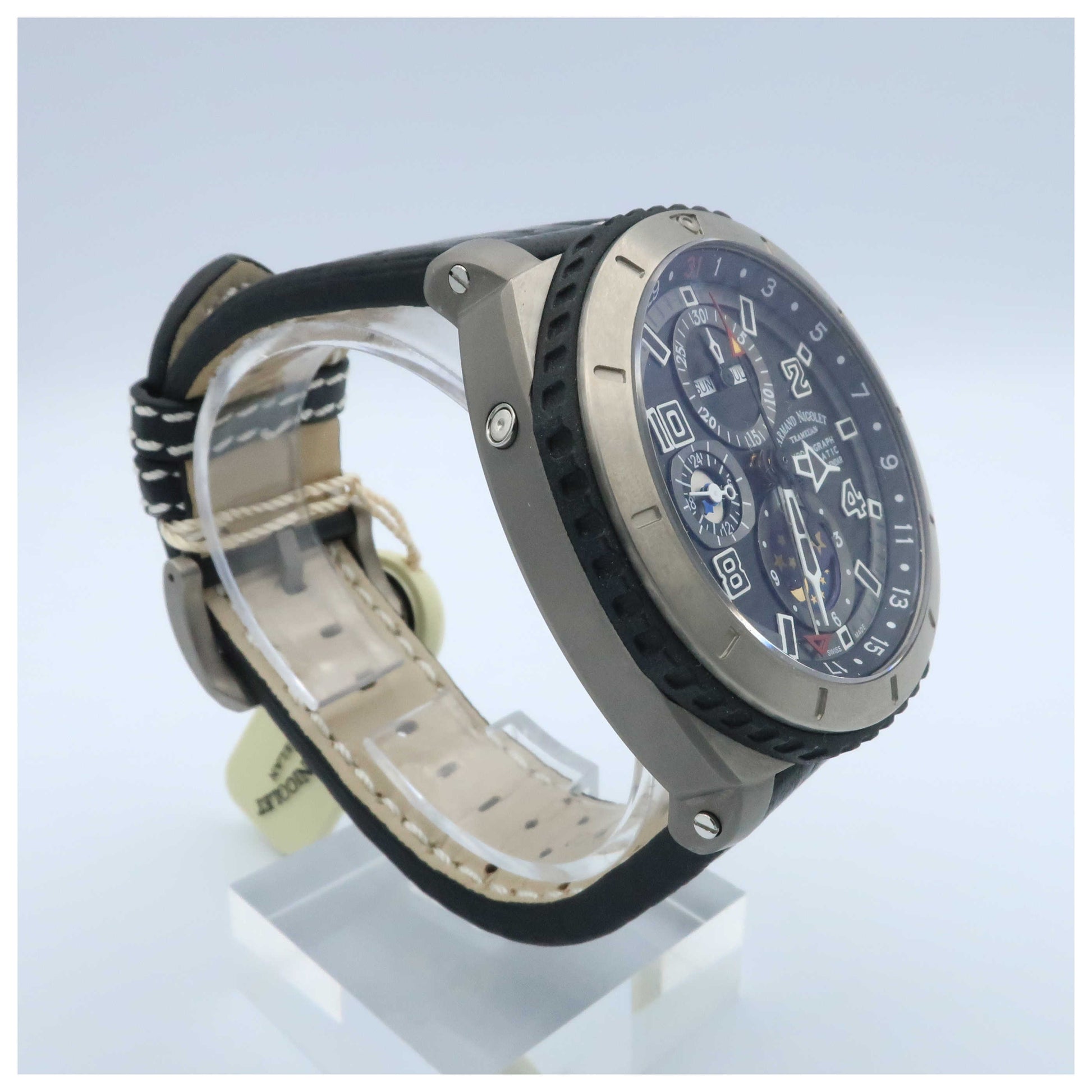Armand Nicolet, S05 Chronograph & Complete Calendar, Men's Watch, Titanium Case, Leather Strap, Automatic, T614A-GR-P160NR4-SD