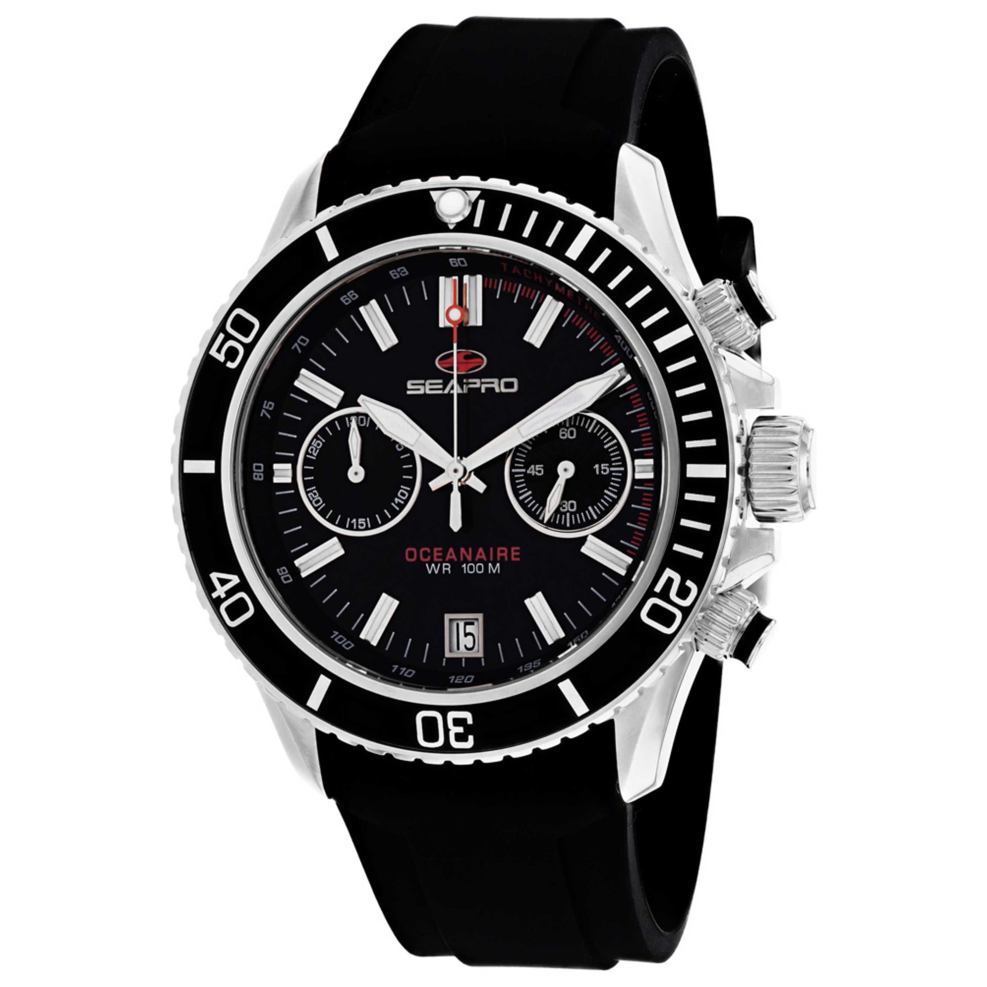 Introducing the Seapro Thrash men's watch, a rugged timepiece engineered for style and endurance. Equipped with a precise quartz movement and a screw-down crown, this chronograph displays time on a black dial protected by durable mineral crystal. The round 45mm stainless steel case offers a robust 100m water resistance, making it perfect for those who thrive in the water. A matching black silicone strap ensures comfort and a secure fit, fastening with a reliable pin buckle. This feature-rich watch also includes a convenient date display. The Thrash watch truly embraces the adventurous spirit. SP0330