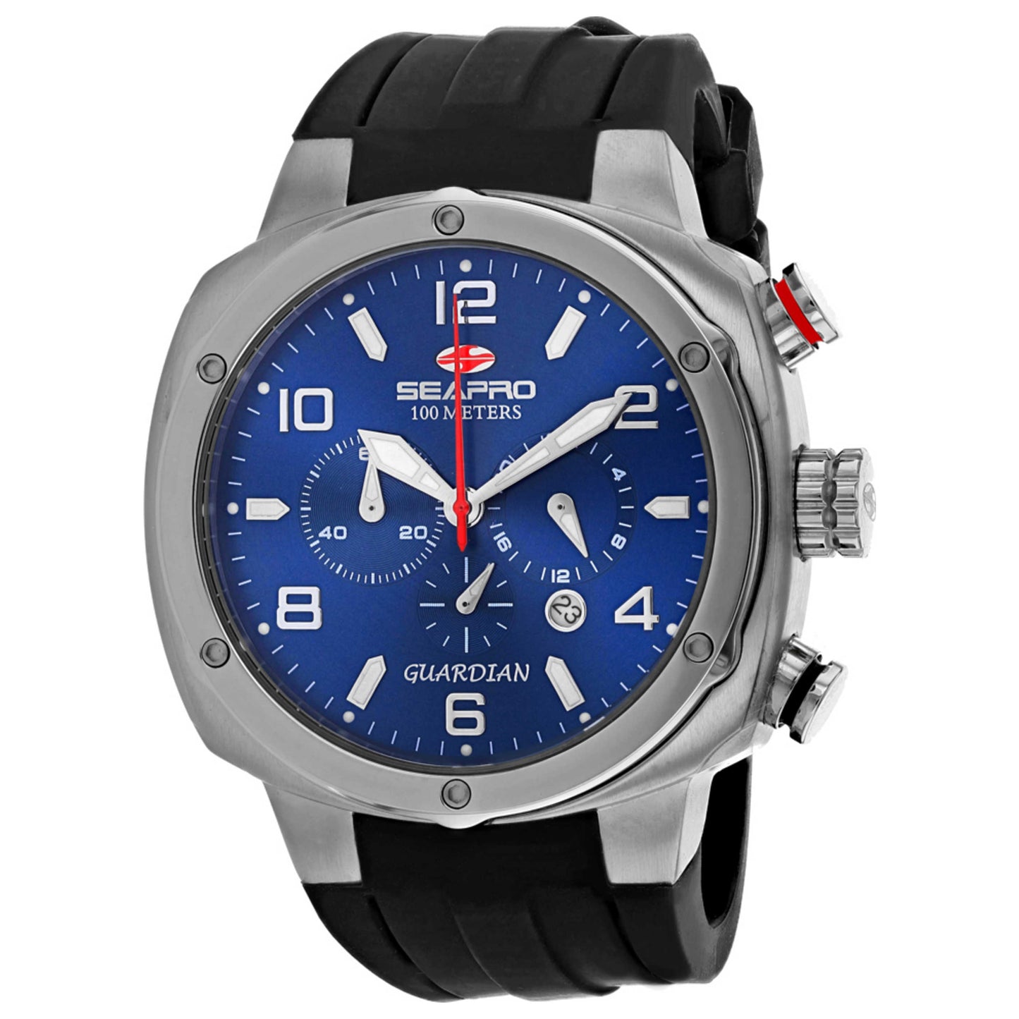 Enhance your everyday style with the Seapro Guardian watch, an ideal accessory for men with a taste for adventure. This round quartz timepiece features a 44mm stainless steel case, covered by a hard-wearing mineral crystal. Its striking blue dial is easily adjusted by a pull and push crown, and boasts a water resistance up to 100m. The watch pairs with a black silicone strap, comfortably fitting around your wrist, securely fastened by a pin buckle. This rugged yet stylish timepiece is ready to keep pace with your active lifestyle. SP3342