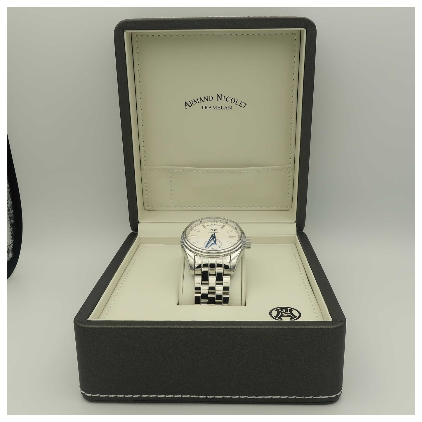 Armand Nicolet, Hunter Small Second, Men's Watch, Stainless Steel Case, Stainless Steel Bracelet, Swiss Mechanical Automatic (Self-Winding), 9045A-1-AG-M9060-PO