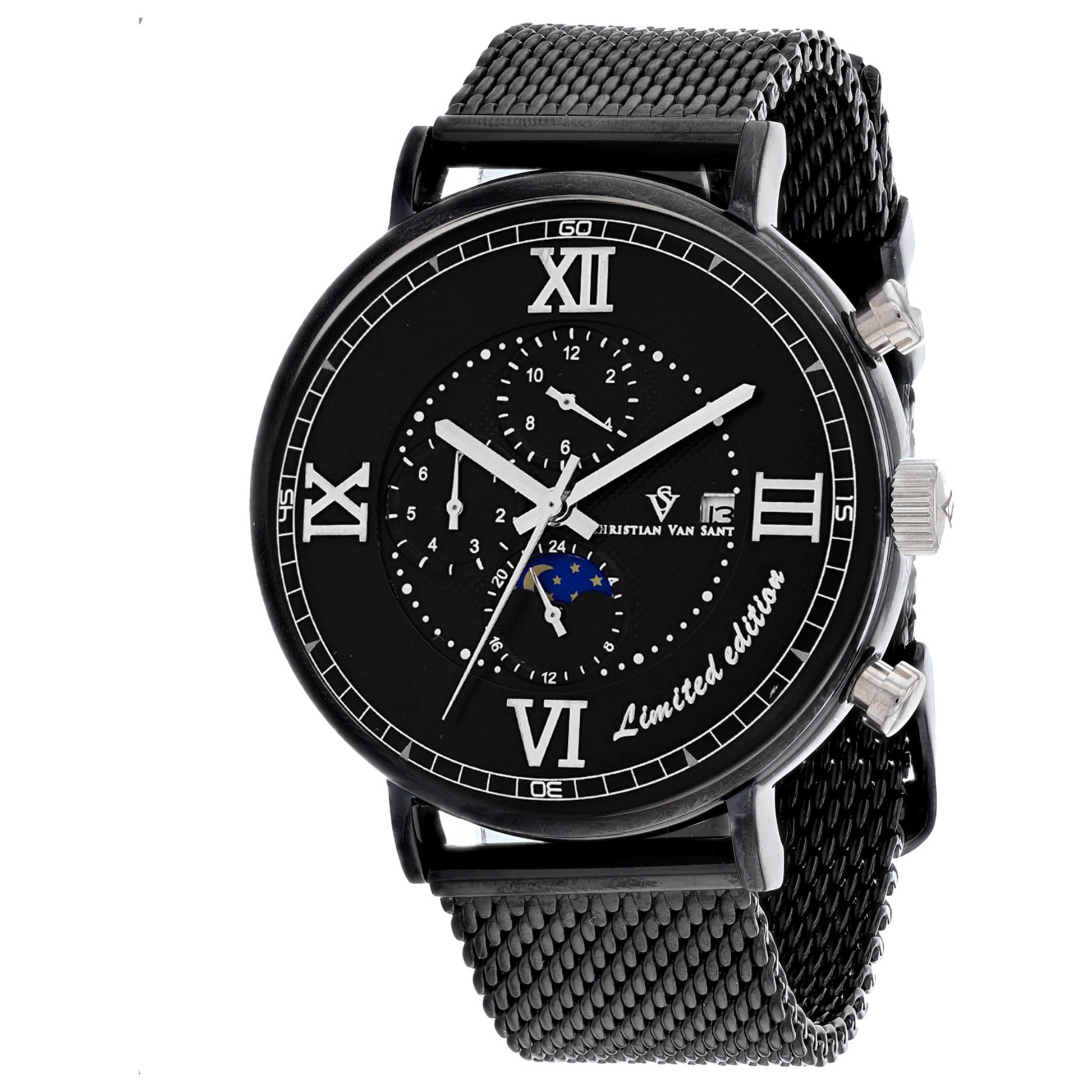 Elevate your look with the Christian Van Sant Somptueuse LTD Men's watch, the epitome of masculine sophistication. Fueled by an automatic movement and protected by a screw-down crown, this watch assures timekeeping precision. Encased in a round 46mm stainless steel case, the alluring black dial is shielded by mineral crystal, guaranteeing durability with a 100m water resistance. The black stainless steel bracelet adds a modern touch and fastens securely with a pin buckle. Enjoy the practical elegance of this timepiece with its notable date feature. CV1159