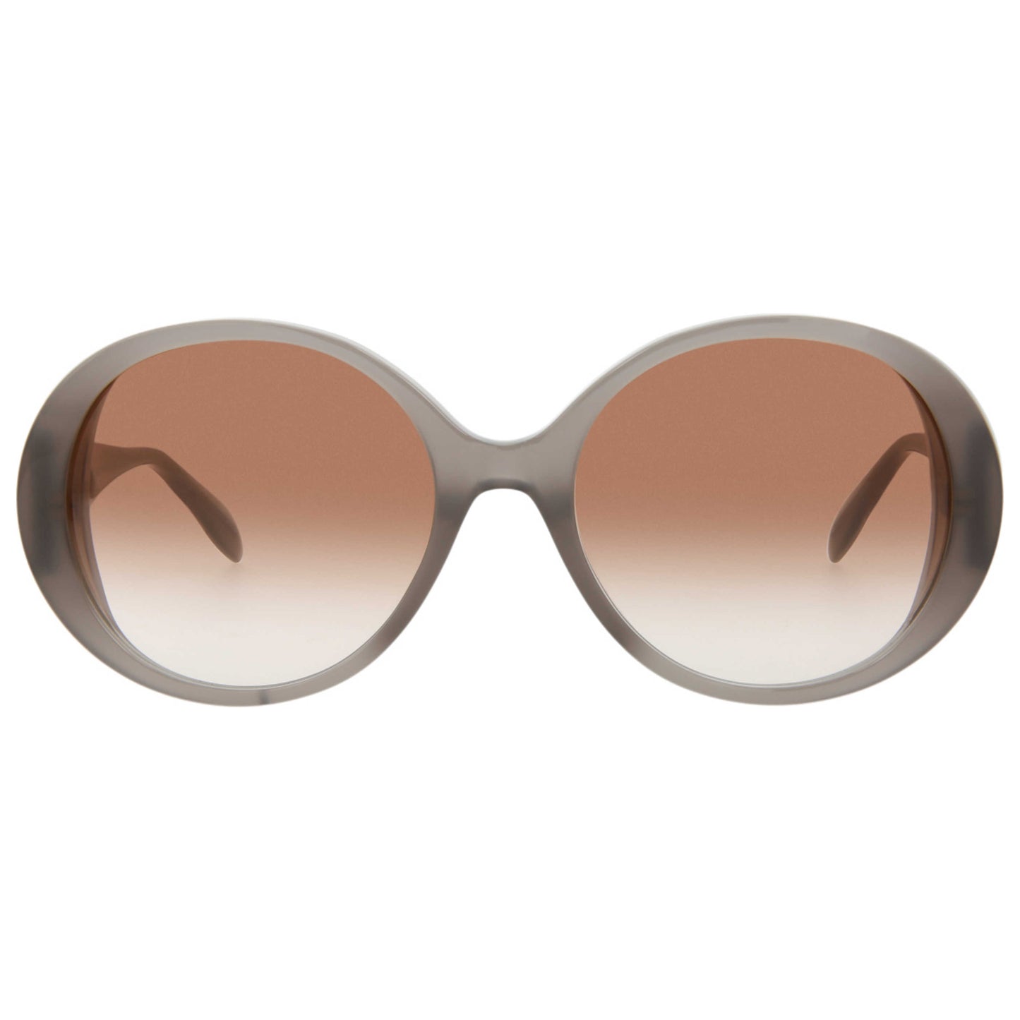 Explore the allure of Alexander McQueen women's sunglasses, masterfully crafted from grey acetate. These sunglasses feature a lens width of 57 mm, arm length of 145 mm, bridge width of 19 mm, and brown lenses. Designed and made in Italy, they promise style and a perfect fit. AM0285S-30009390-007