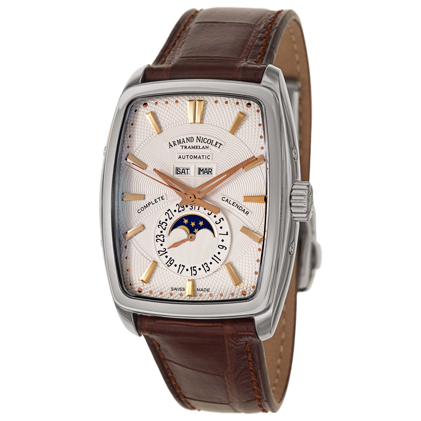 Armand Nicolet, TM7 Complete Calendar, Men's Watch, Stainless Steel Case, Leather Alligator Strap, Automatic, 9632A-AS-P968MR3