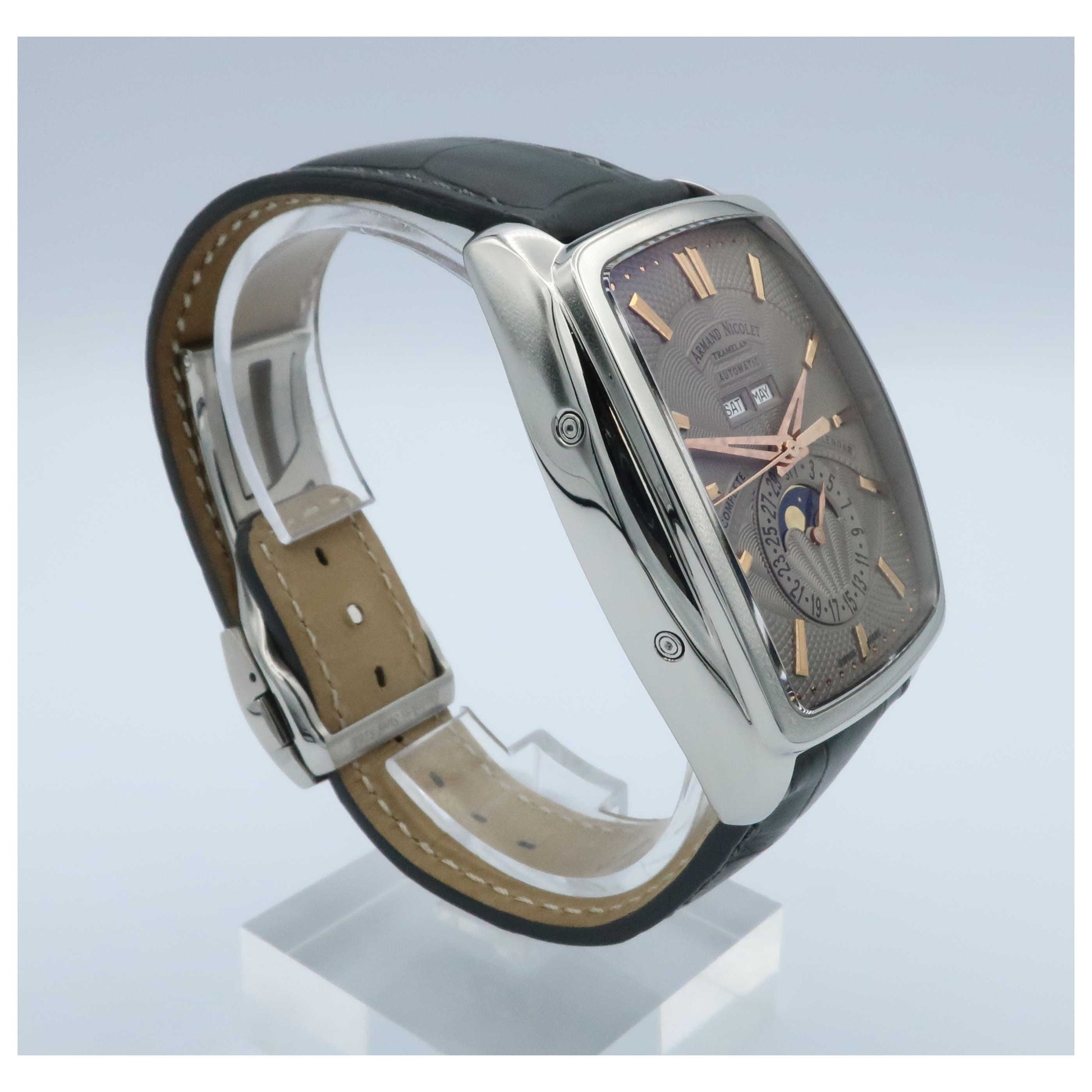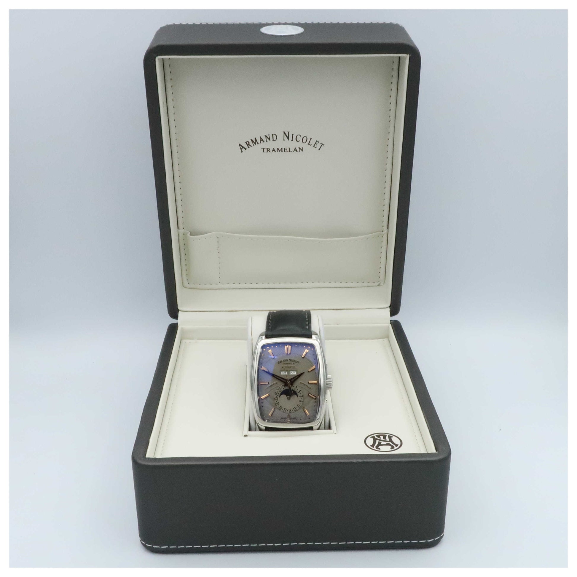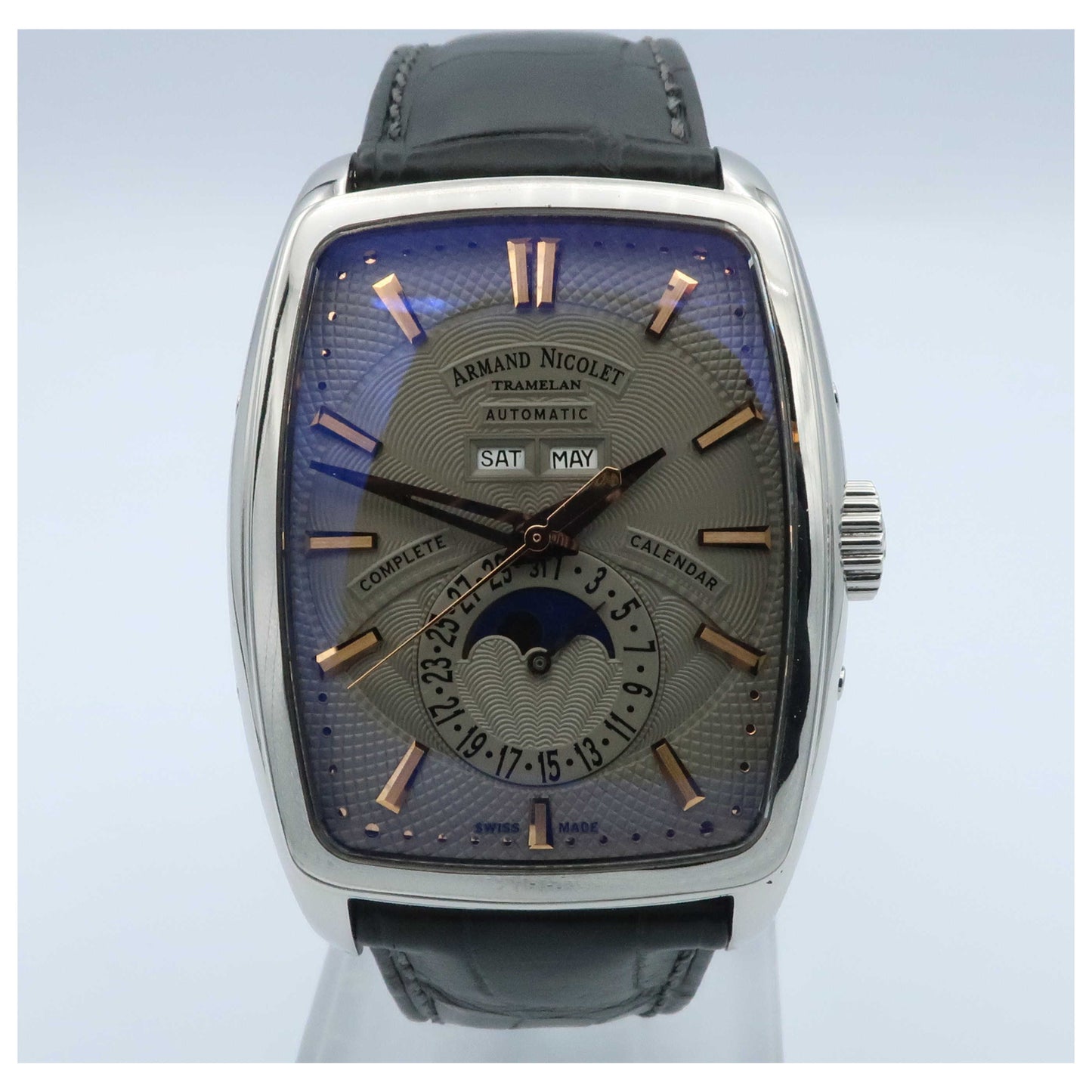 Armand Nicolet, TM7 Complete Calendar, Men's Watch, Stainless Steel Case, Leather Alligator Strap, Automatic, 9632A-GS-P968GR3-SD