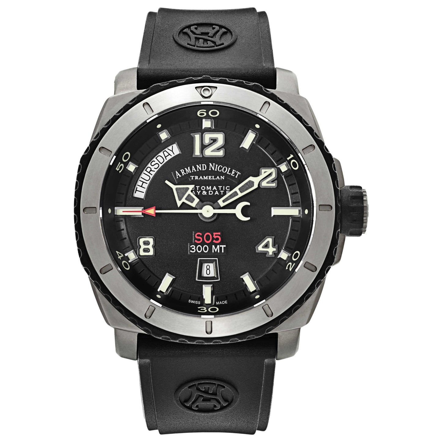 Armand Nicolet, S05, Men's Watch, Titanium Case, Rubber Strap, Swiss Mechanical Automatic (Self-Winding), T610A-1-NK-G9610